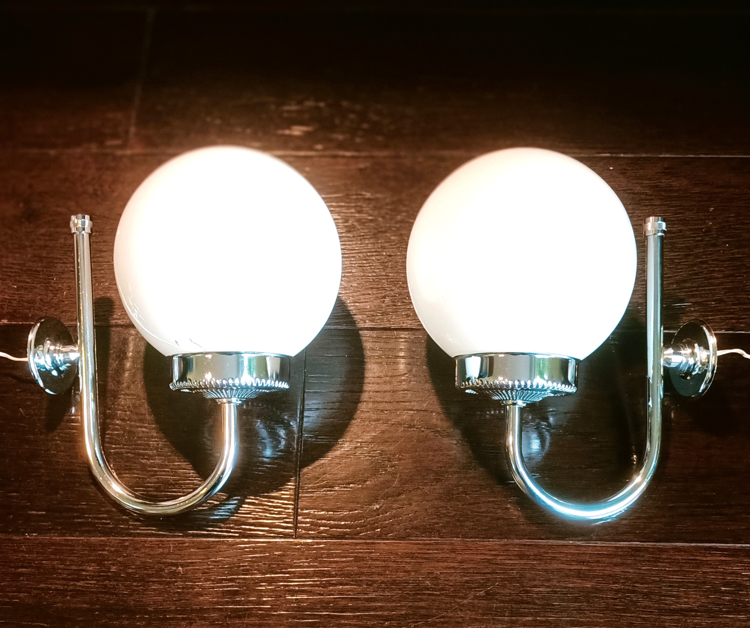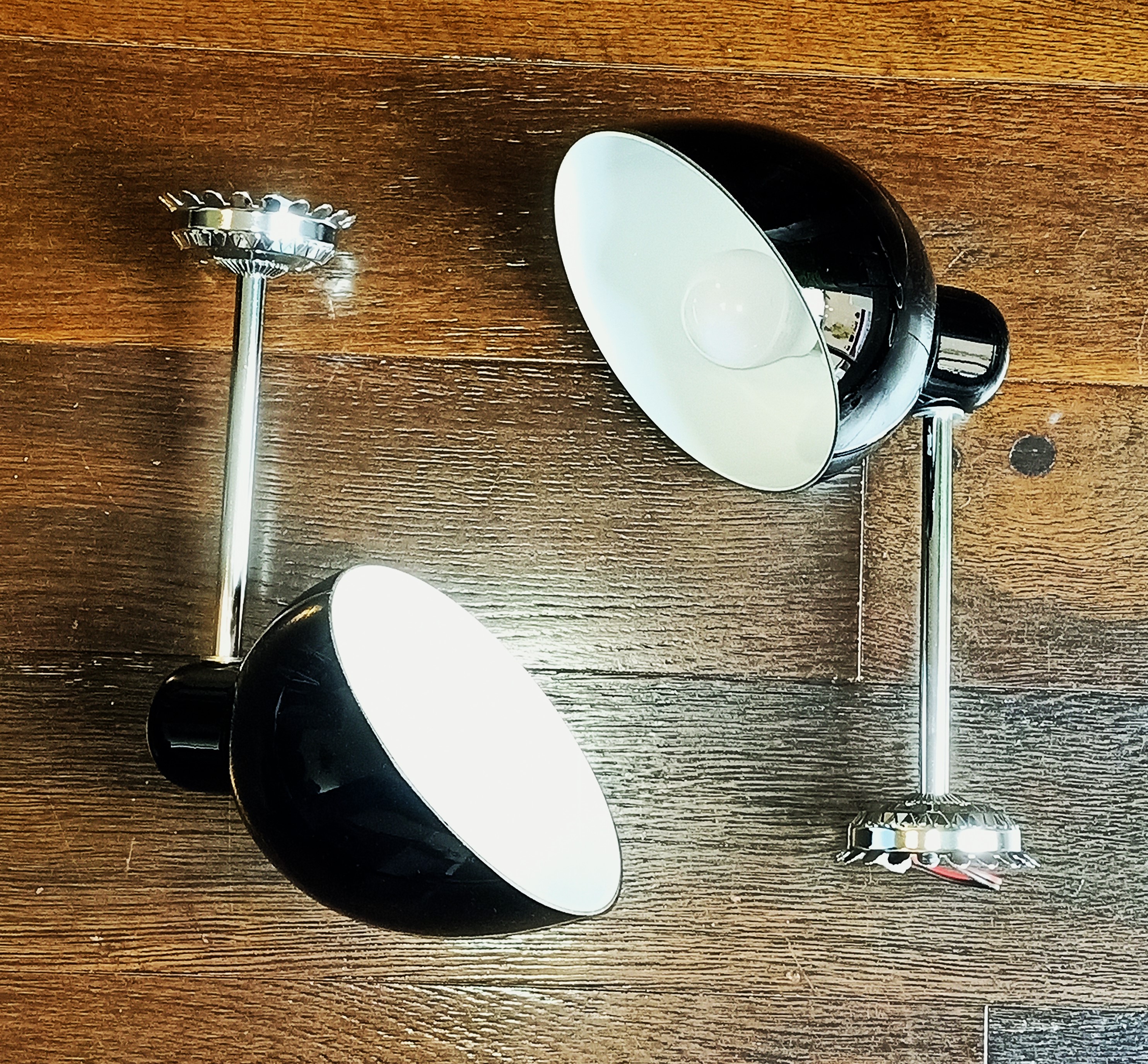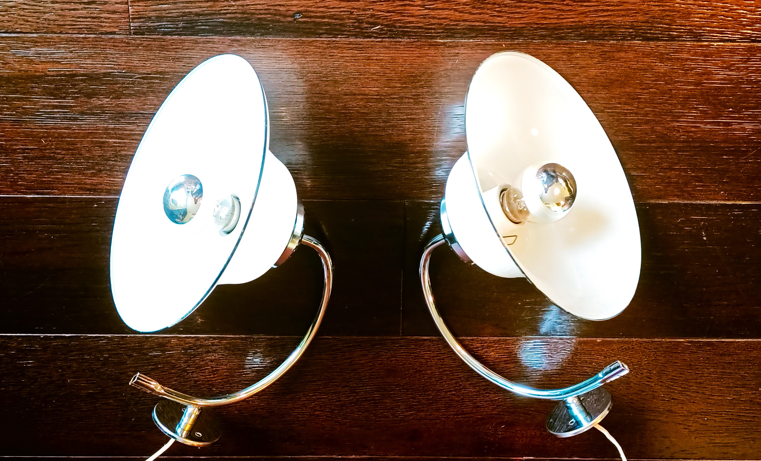 – Marca «Albinor» de la antigua Checoslovaquia 80´s – Compuestas de 2 brazos de metal cromado sujetando 2 tulipas de porcelana doble creando un potente contraste de tonos