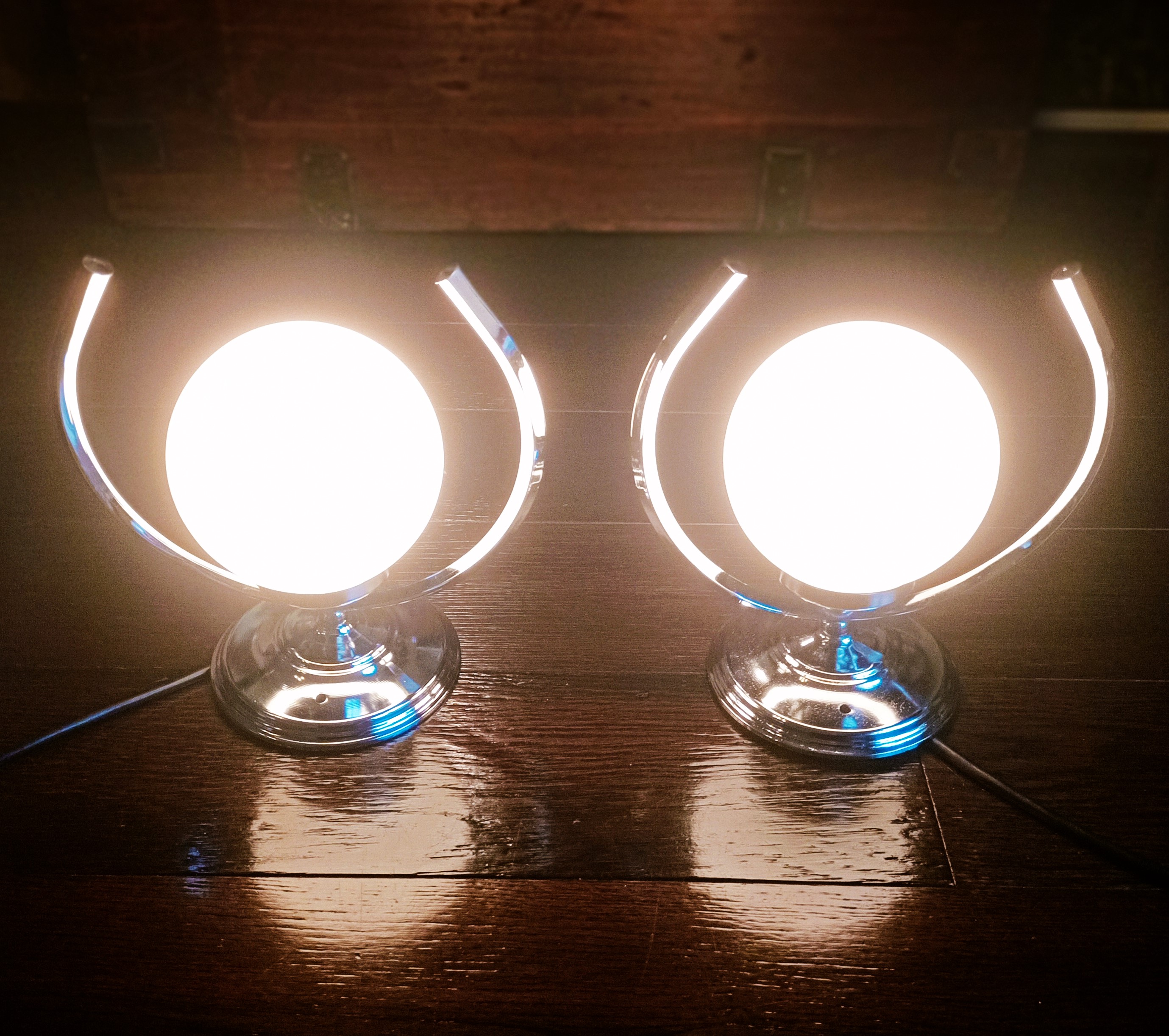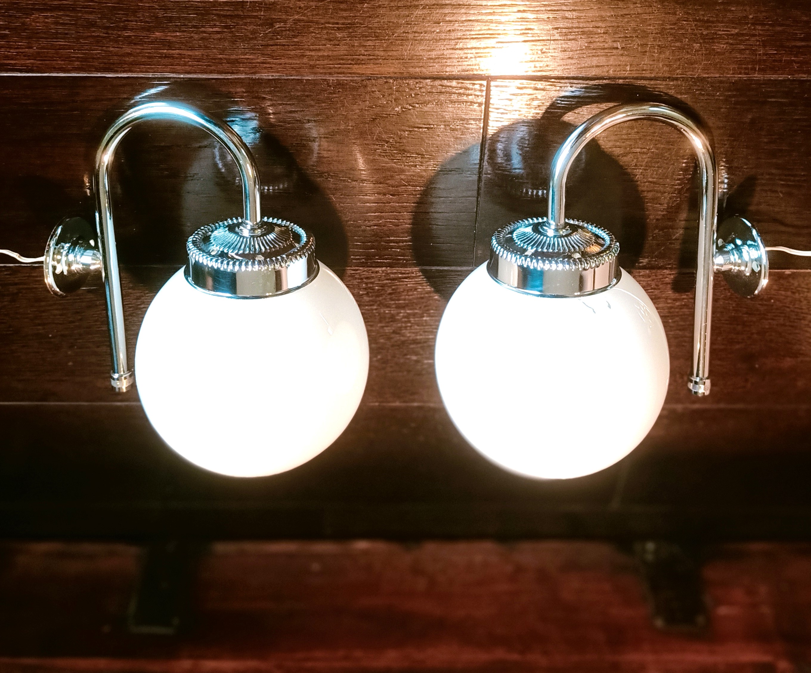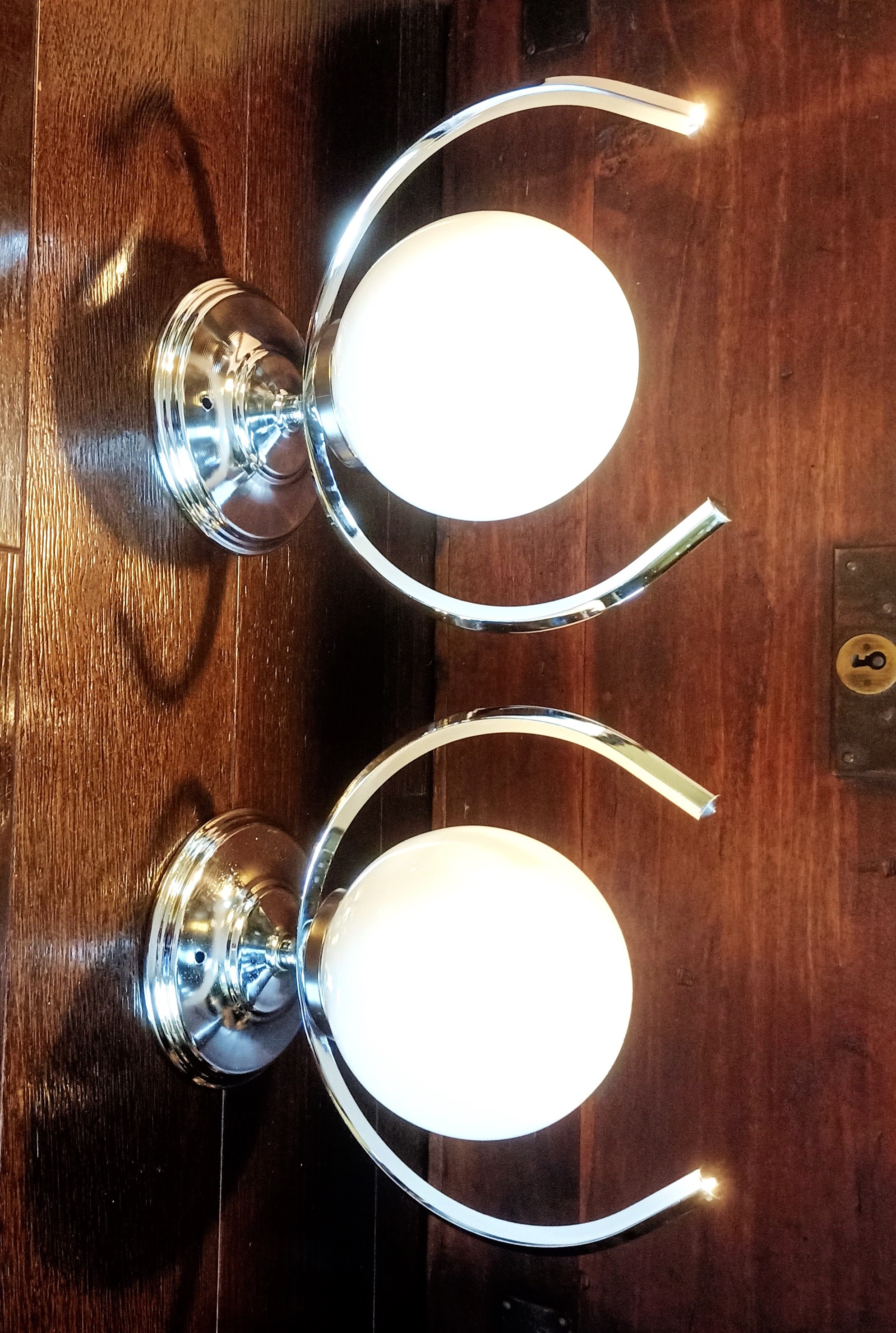 – Marca «Albinor» de la antigua Checoslovaquia 80´s – Compuestas de 2 brazos de metal cromado sujetando 2 tulipas de porcelana doble creando un potente contraste de tonos