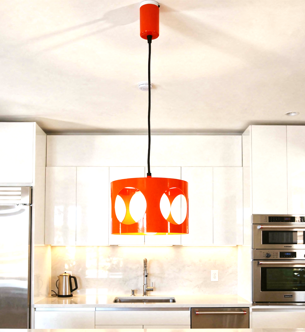 NOVEDAD: LÁMPARA POP ACERO NARANJA Y OPALINA FRANCIA – 70´S