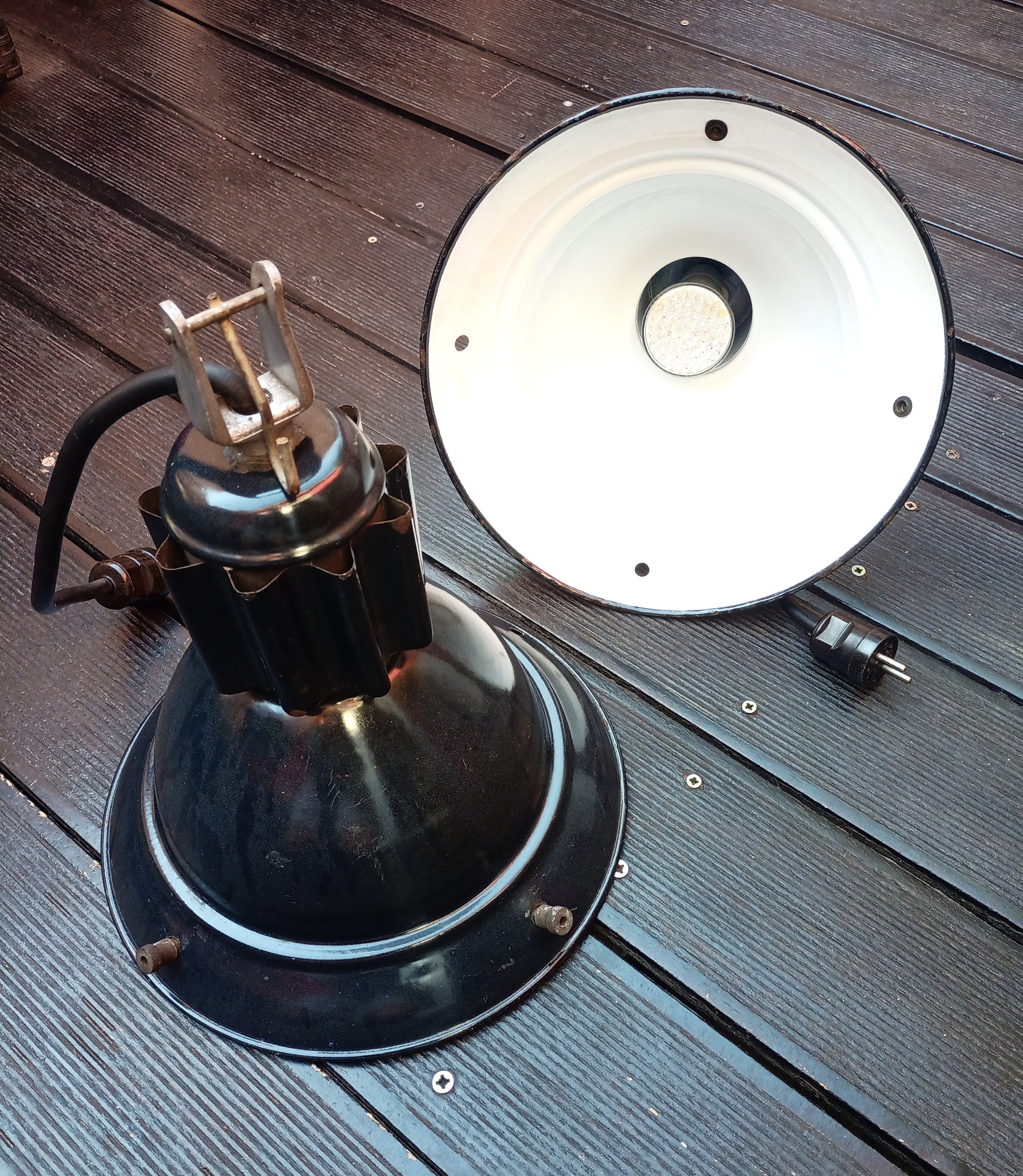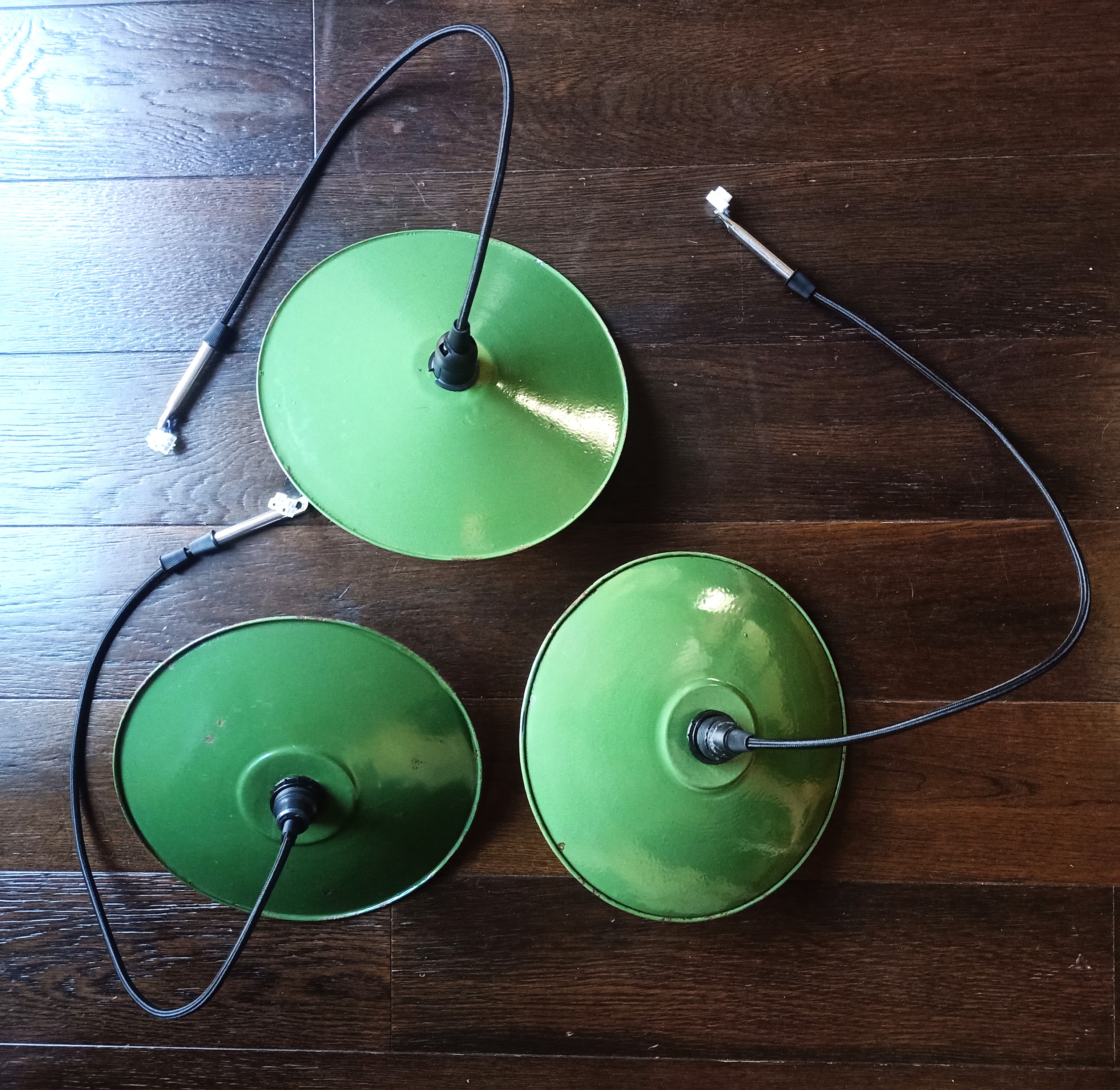 – Tienen un cable corto (40cm) con enchufe original de baquelita. Se pueden enchufar directamente (cuidado dependiendo del tipo de enchufe se puede necesitar un adaptador o se pueden cortar y conectar con una clema a la toma de luz
