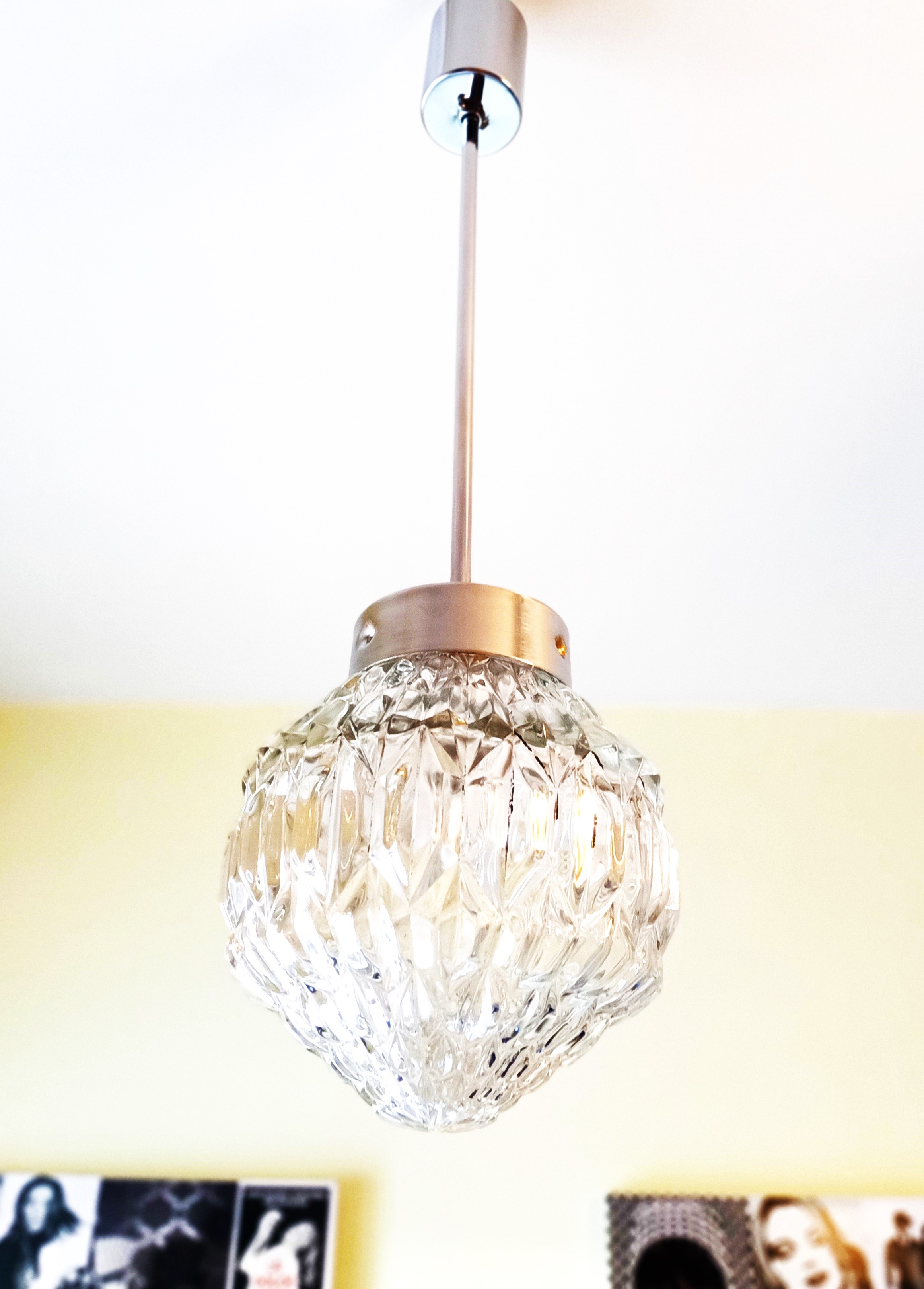 – Viene con su bombilla led nueva (E27, 9W, 3000K), Portalámpara y florón de metal cromado