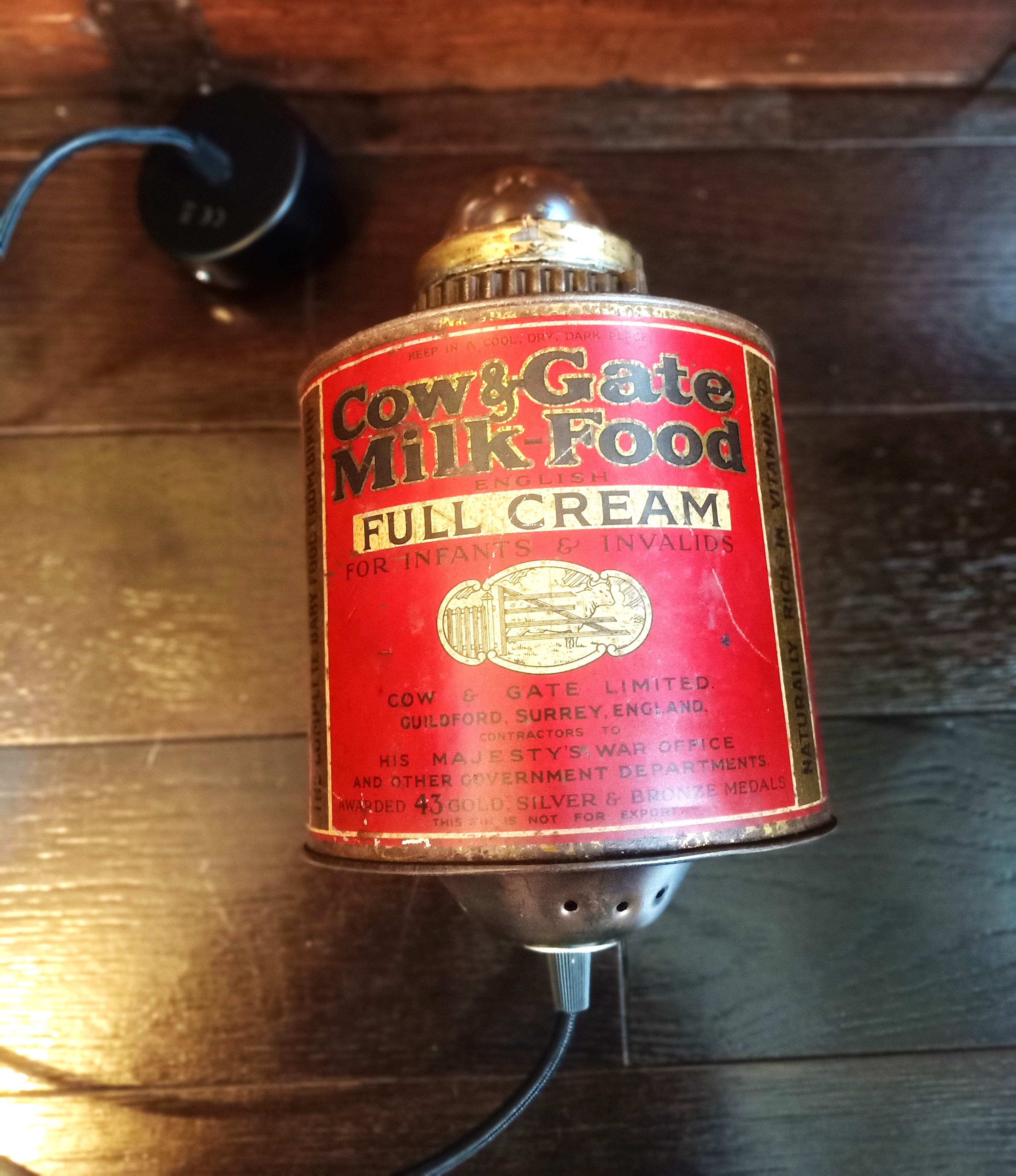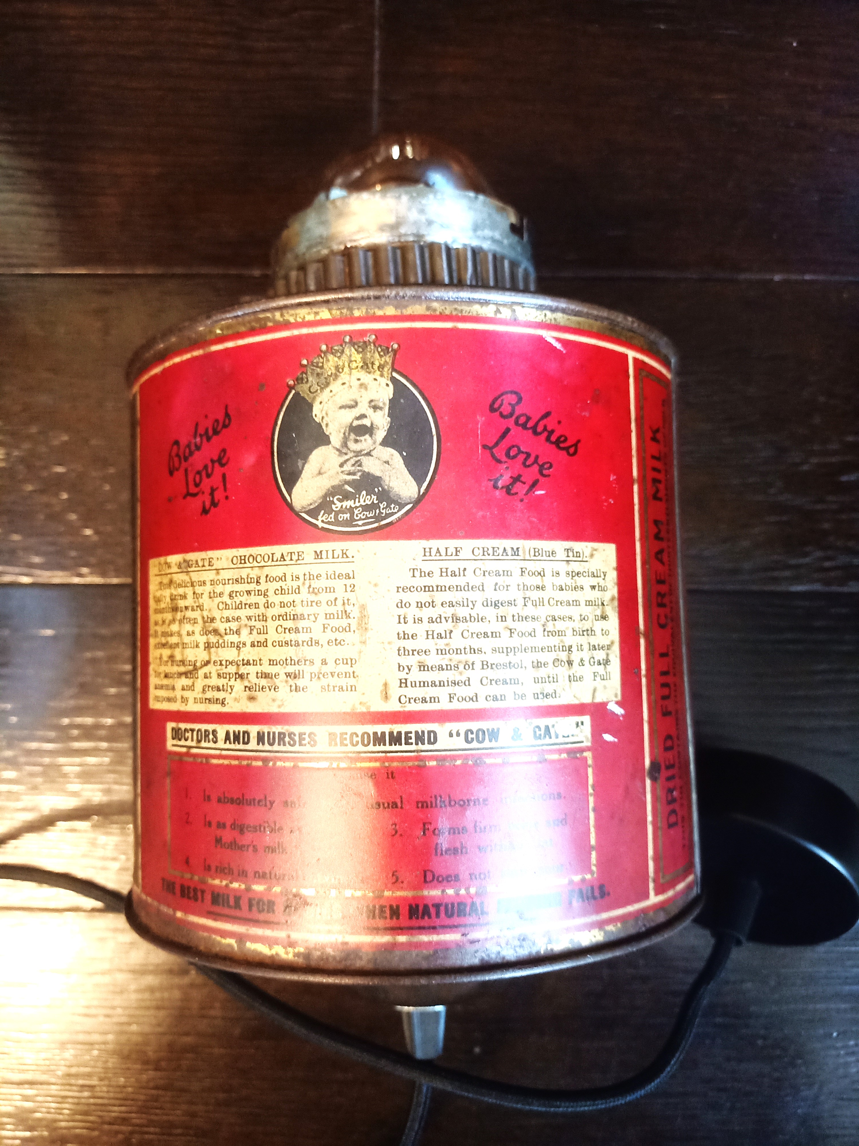 – El cuerpo es una antigua lata de leche en polvo de la famosa marca inglesa «Cow & Gate» destinada a los «Infants and Invalids»