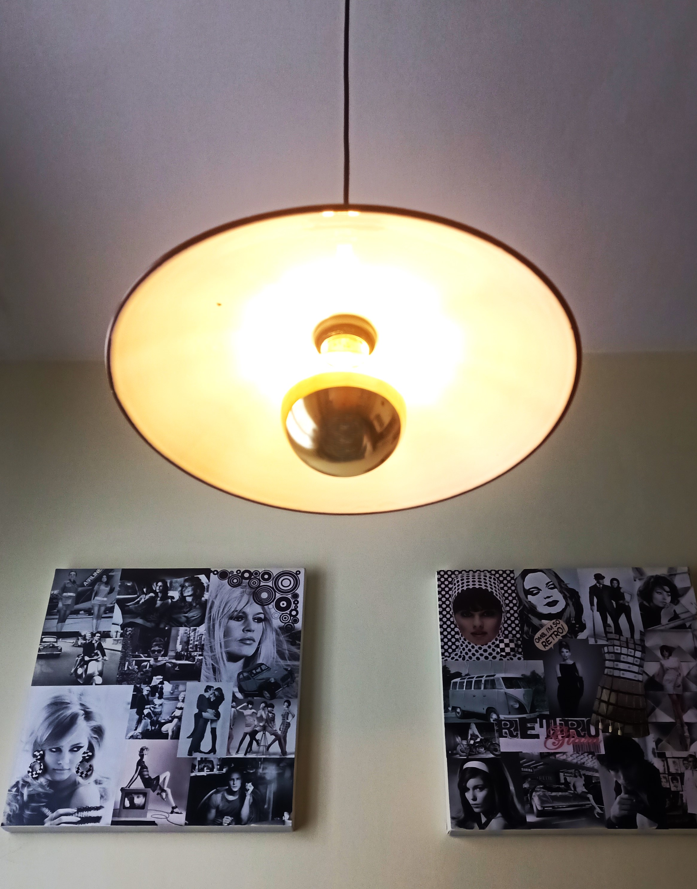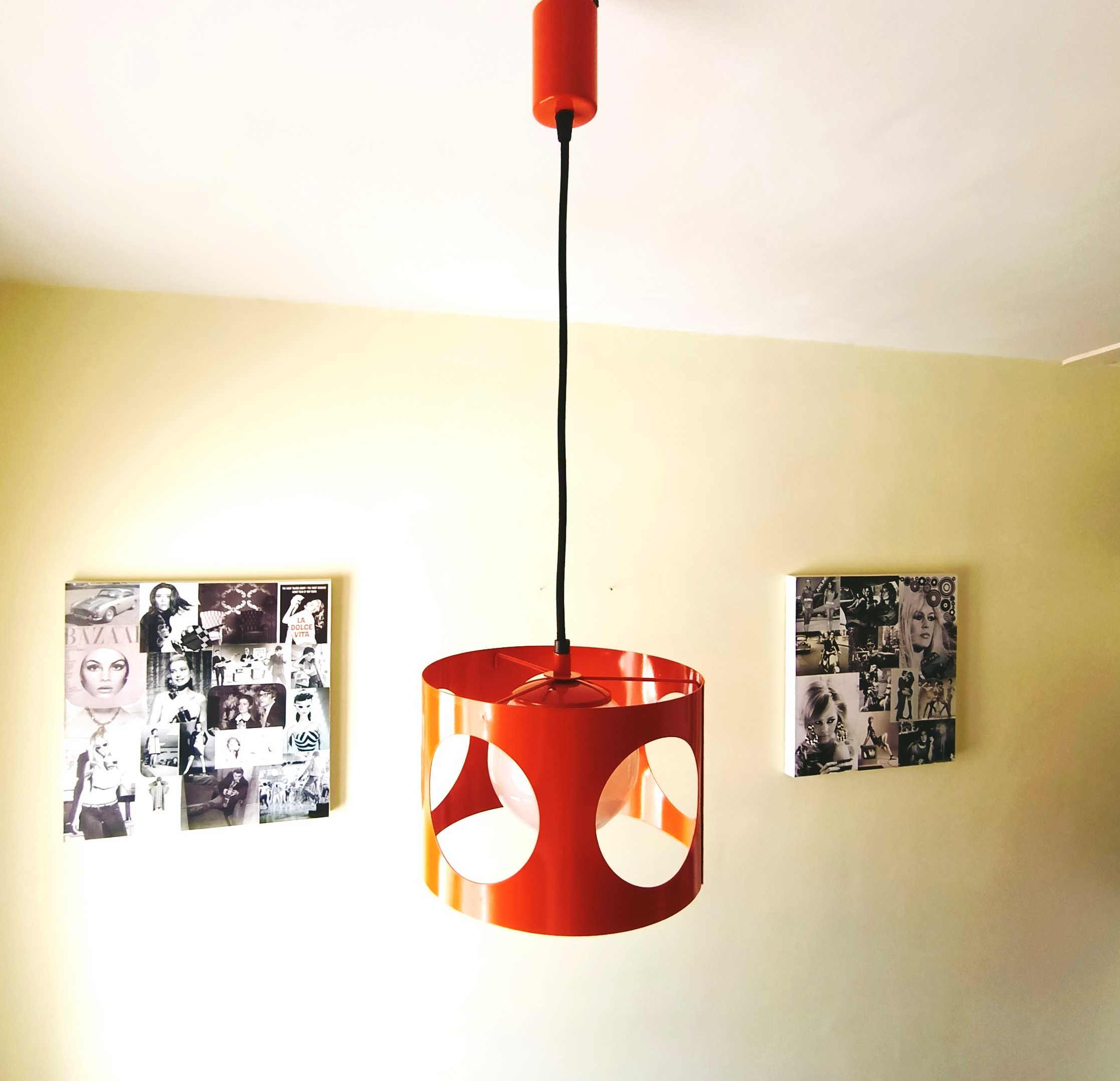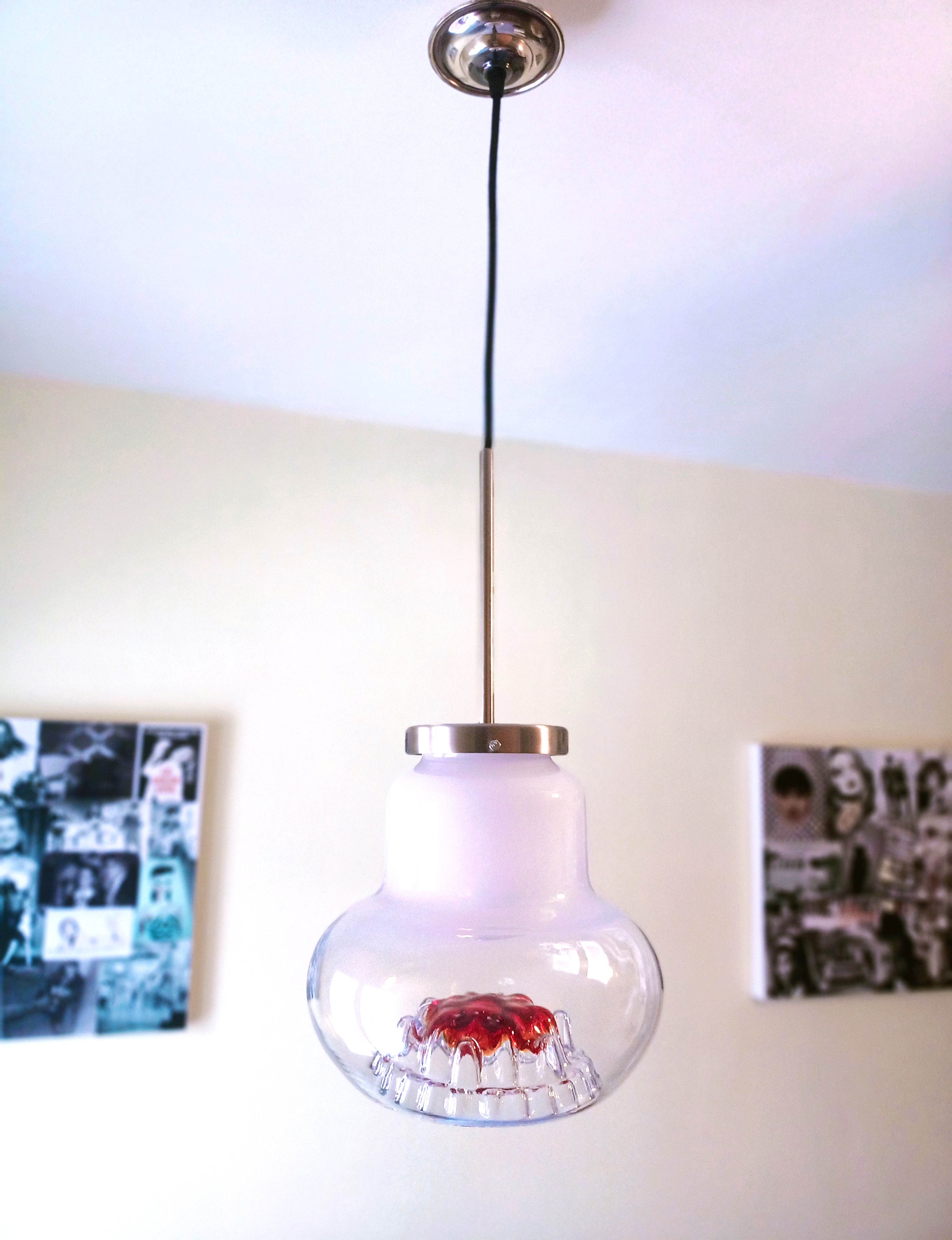 NOVEDAD: LÁMPARA POP ACERO NARANJA Y OPALINA FRANCIA – 70´S