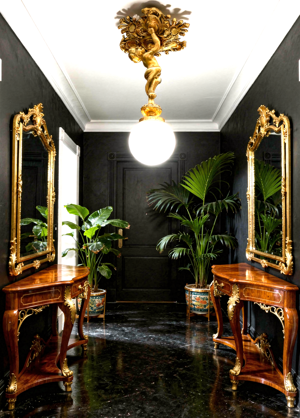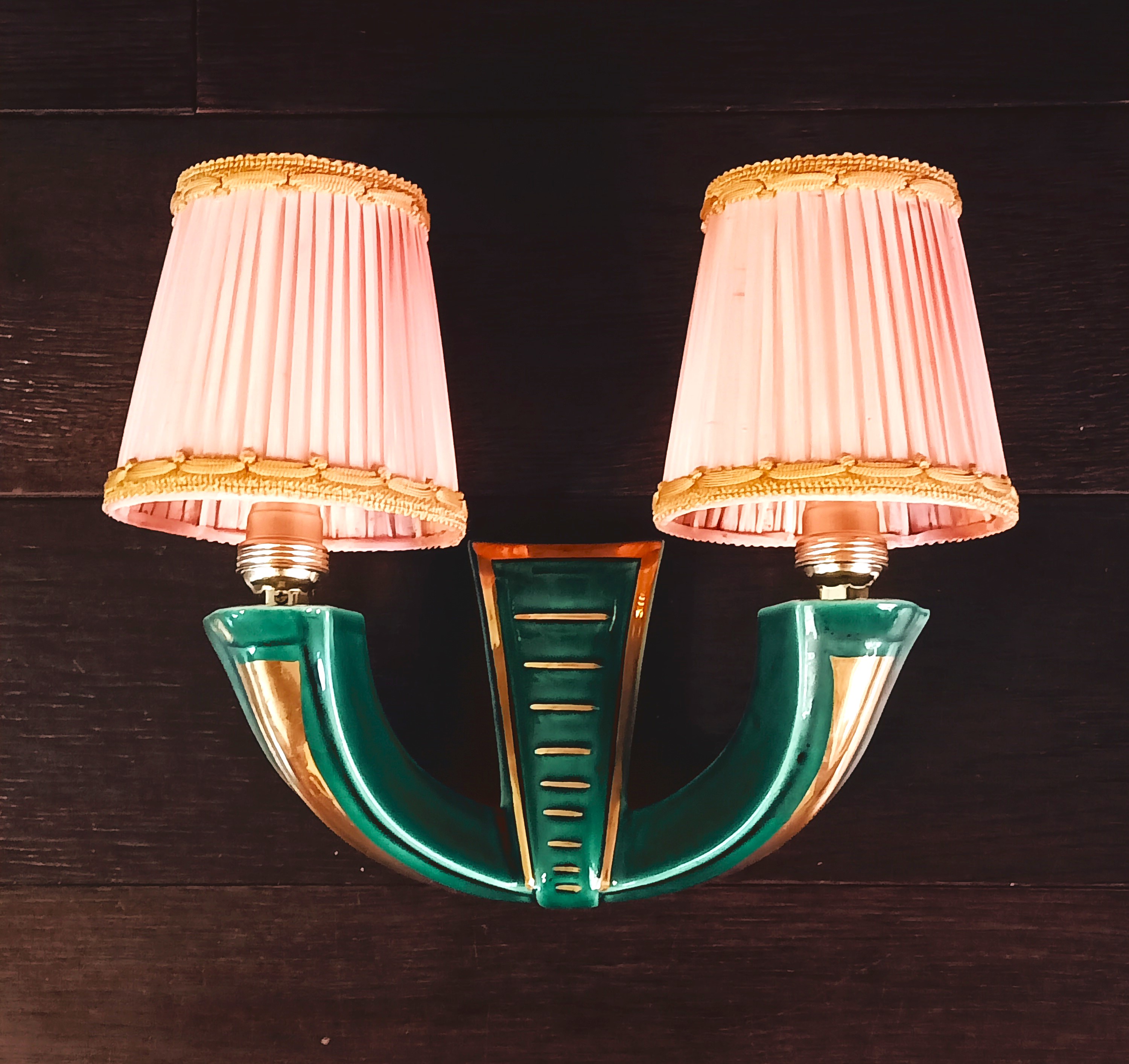 – Magnífica pareja de Apliques de porcelana doble (negro brillo fuera y blanco dentro)