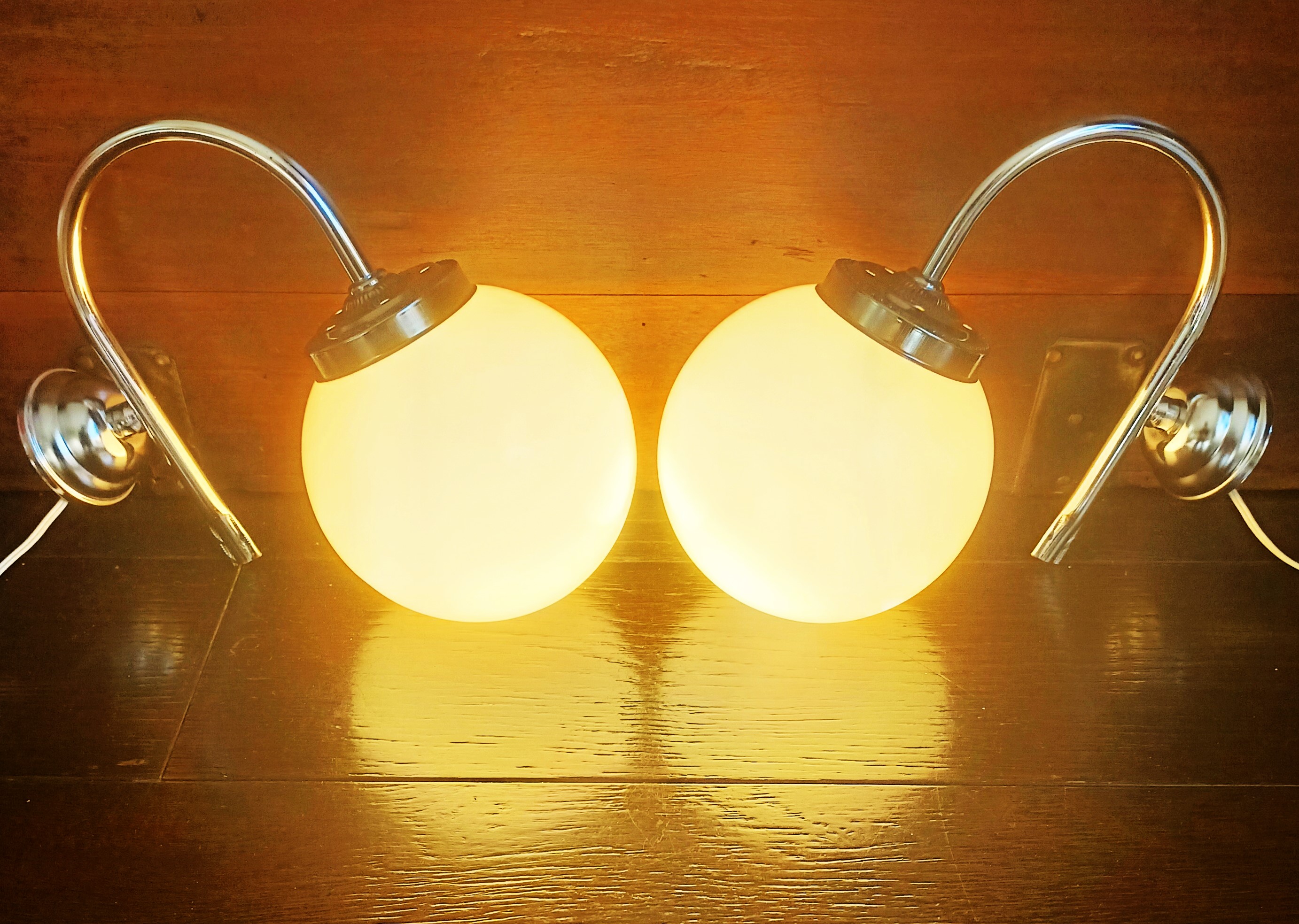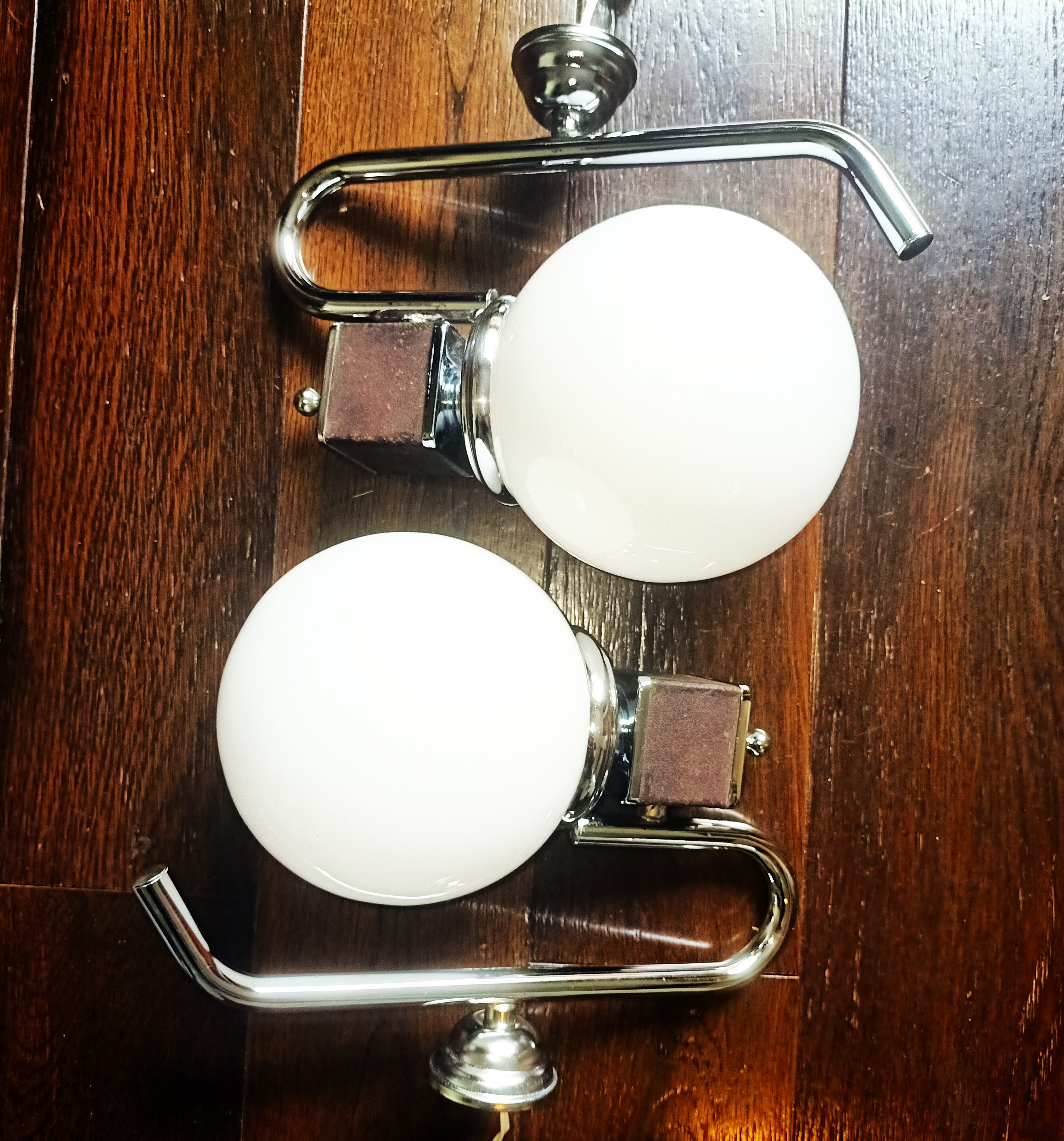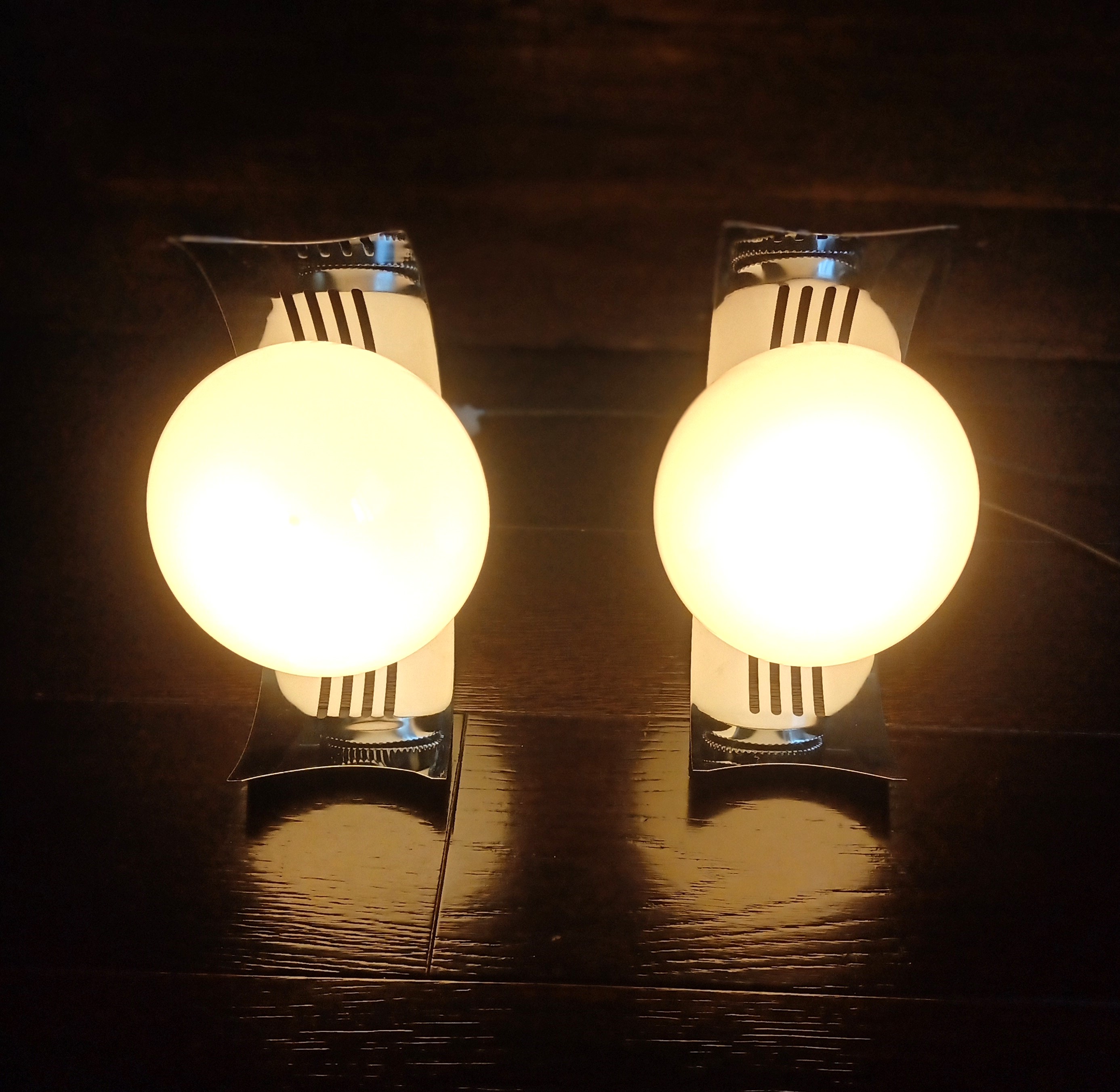 – Marca «Albinor» de la antigua Checoslovaquia 80´s – Compuestas de 2 brazos de metal cromado sujetando 2 tulipas de porcelana doble creando un potente contraste de tonos