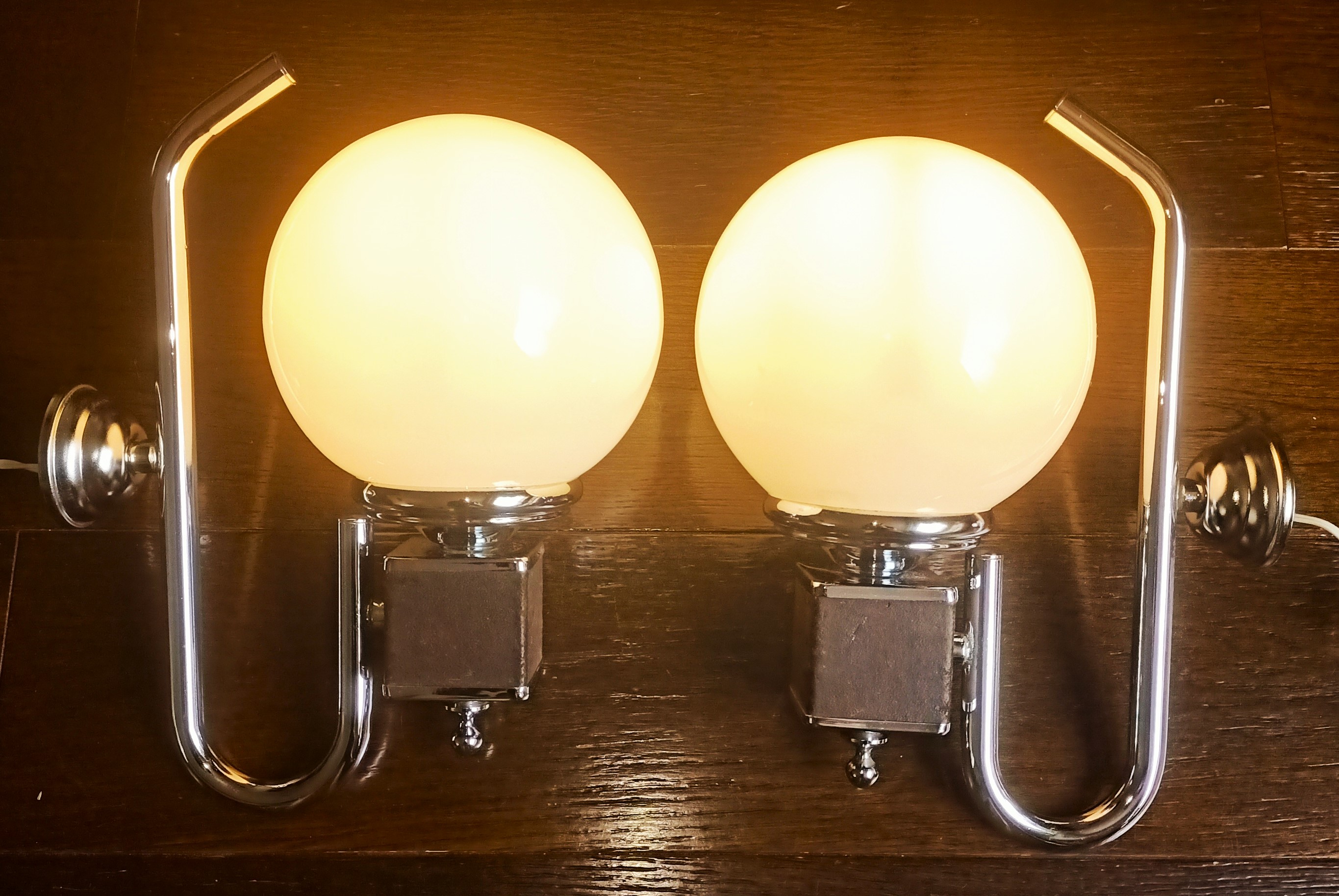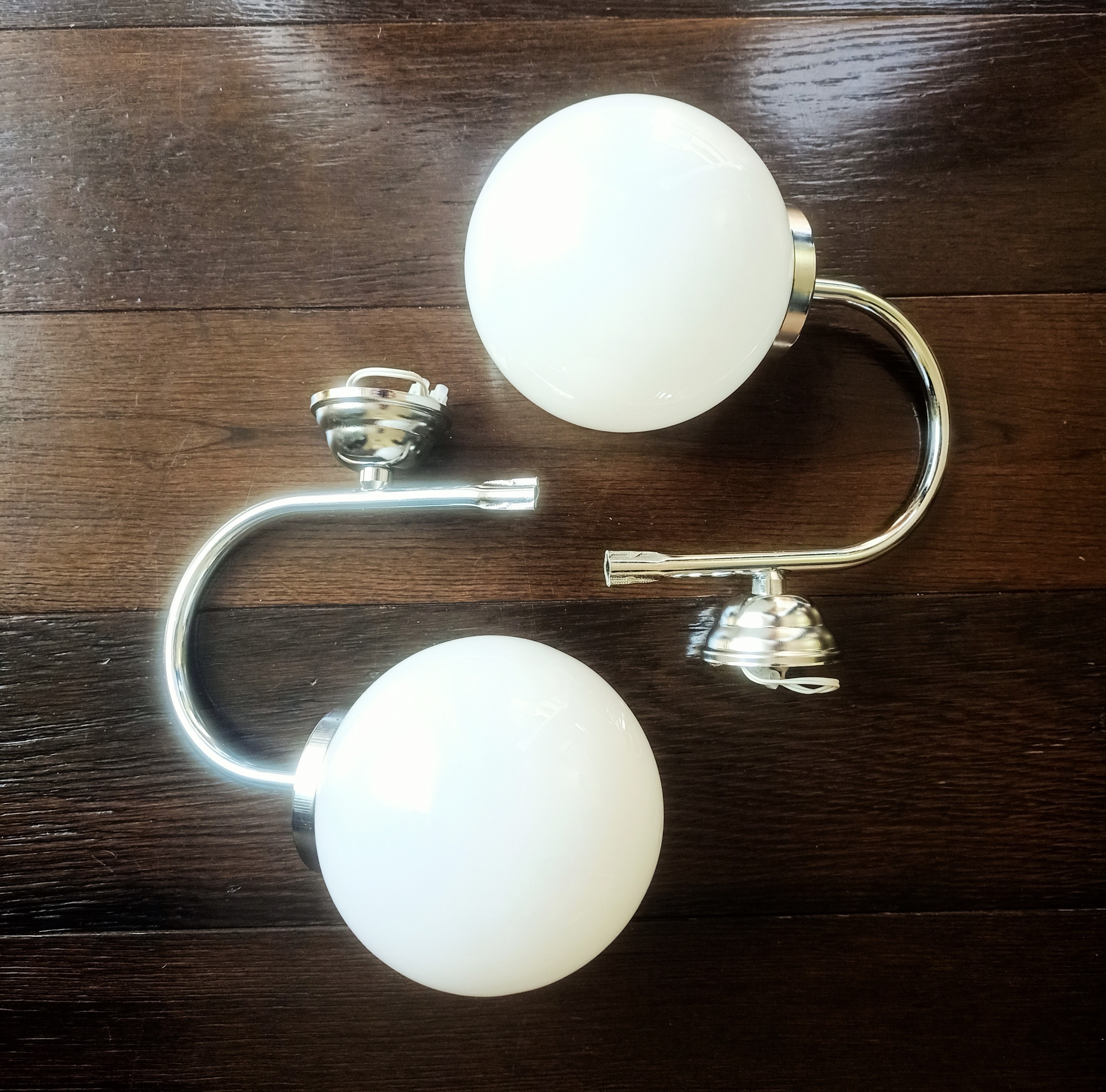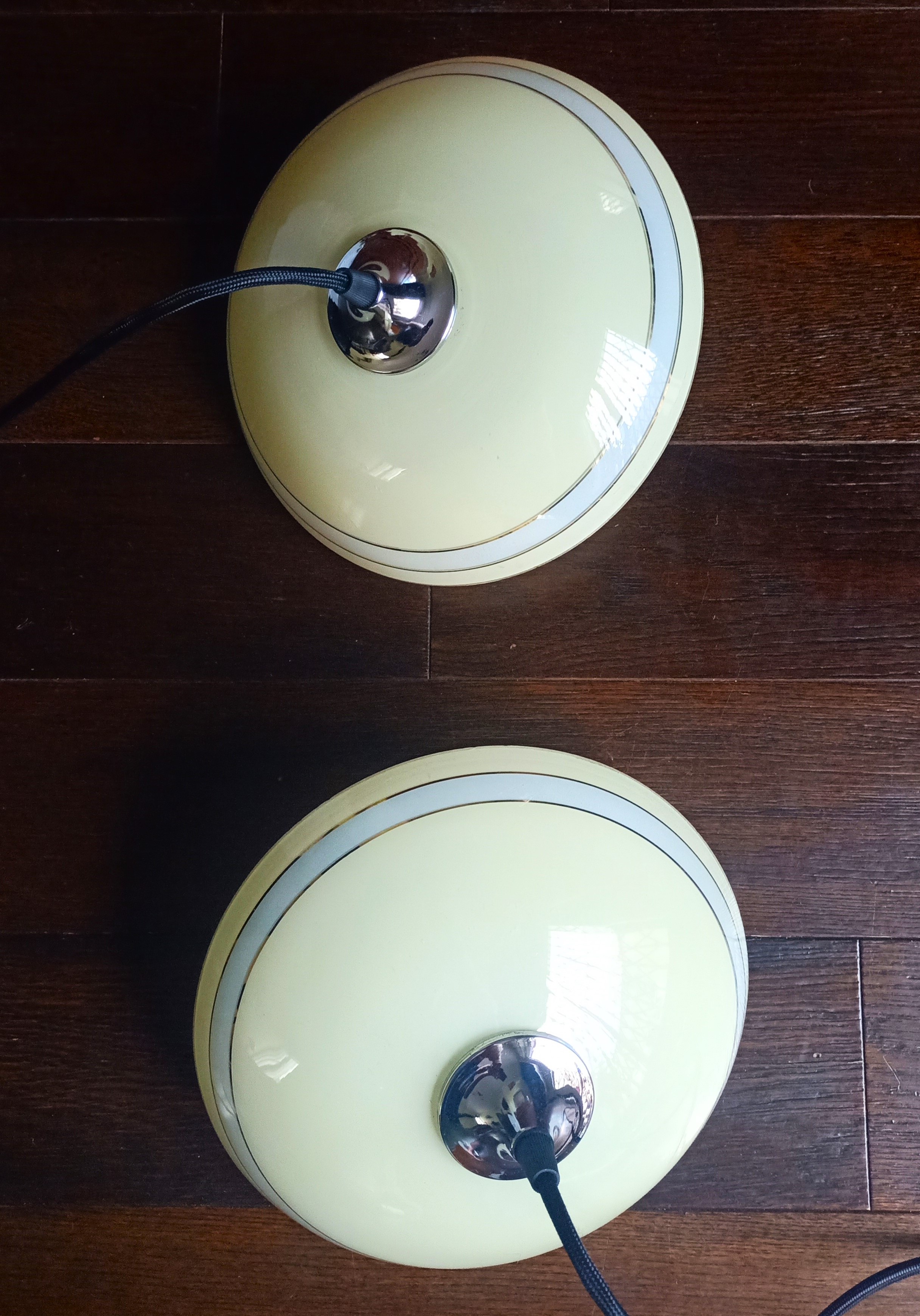 – Marca «Albinor» de la antigua Checoslovaquia 80´s – Compuestas de 2 brazos de metal cromado sujetando 2 tulipas de porcelana doble creando un potente contraste de tonos