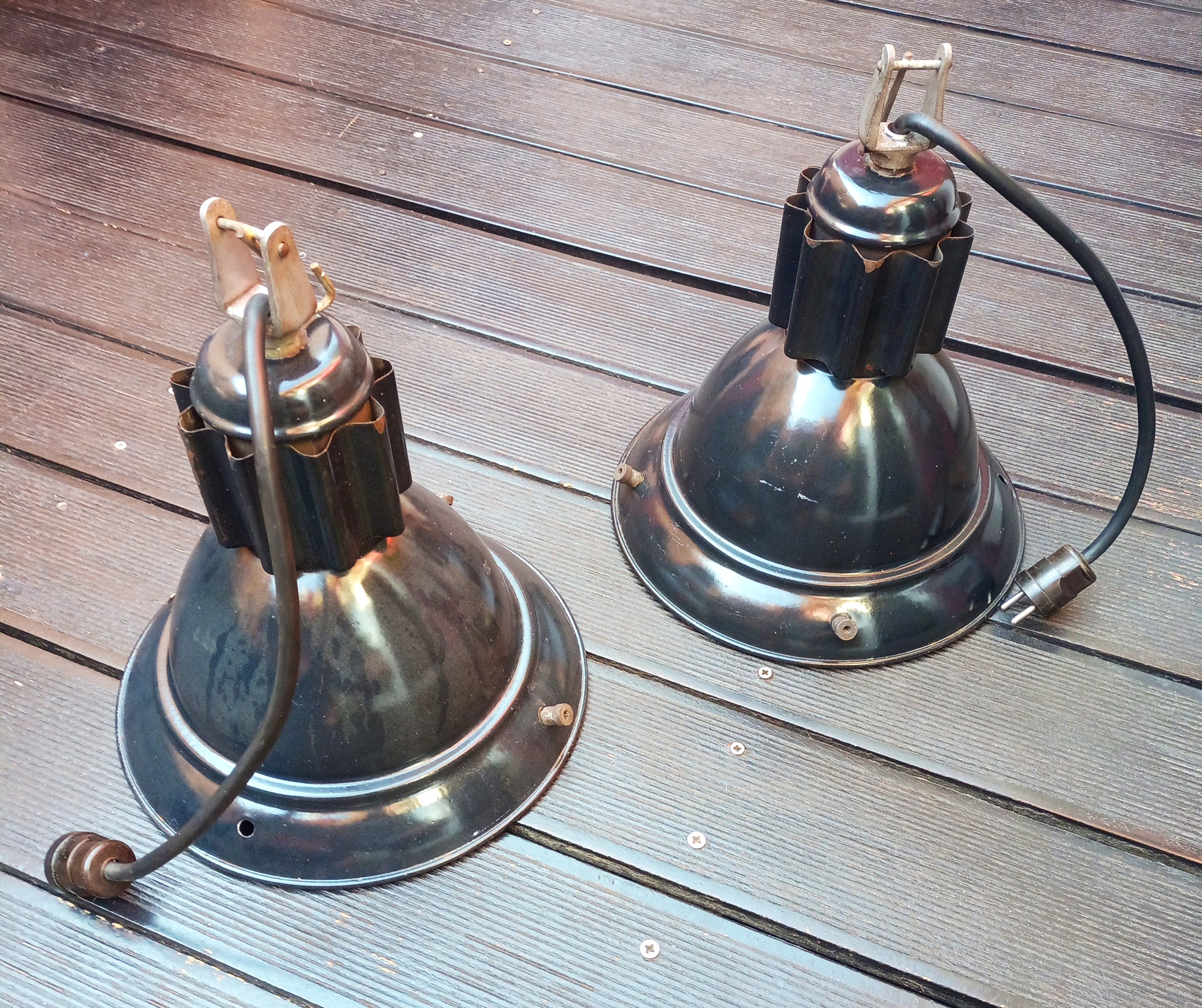 – Magnifica pareja de Lámparas industriales de metal esmaltado de Francia – años 50
