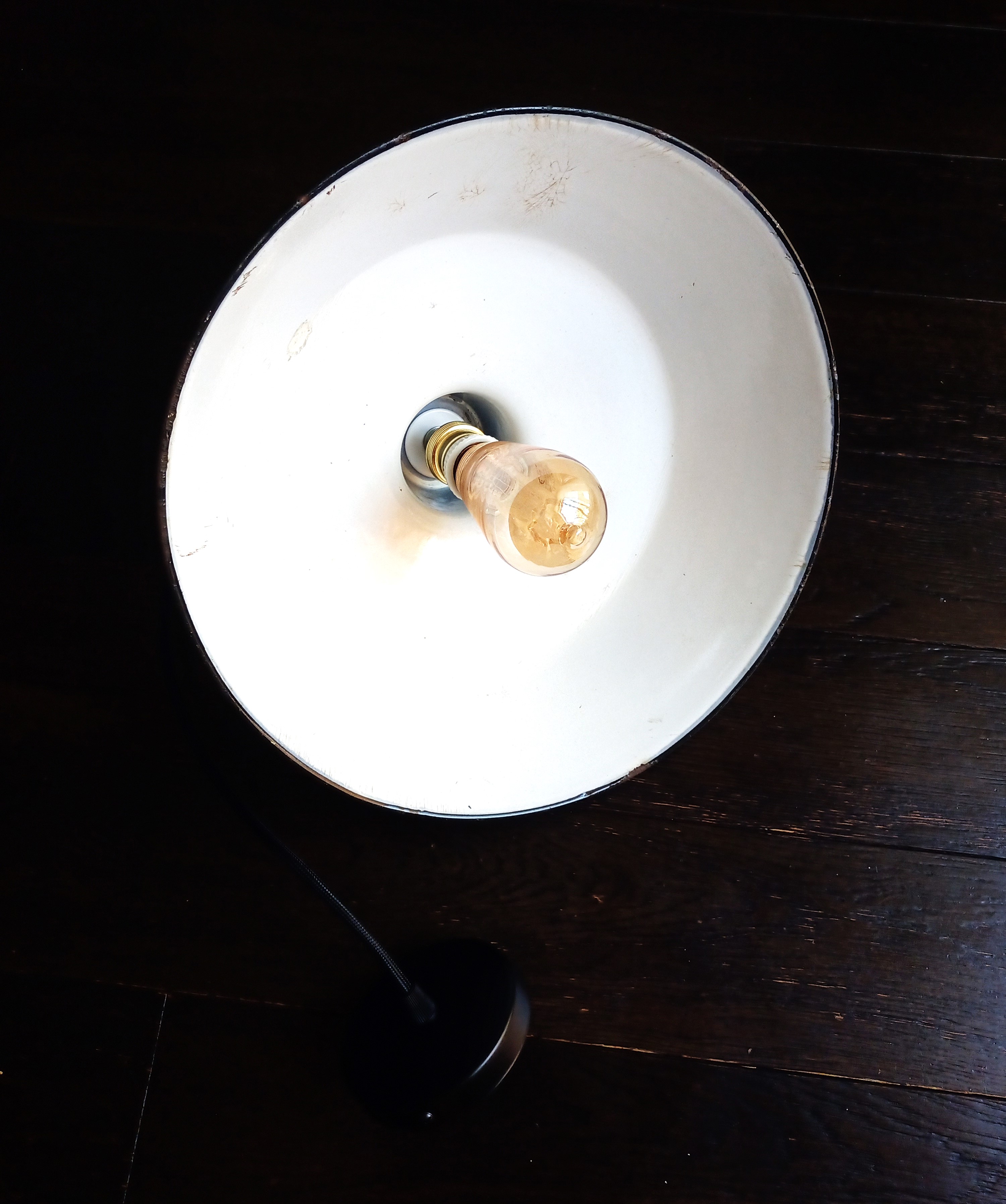 – Lámpara Industrial vintage de metal esmaltado bicolor (negro por fuera y blanco por dentro) de España