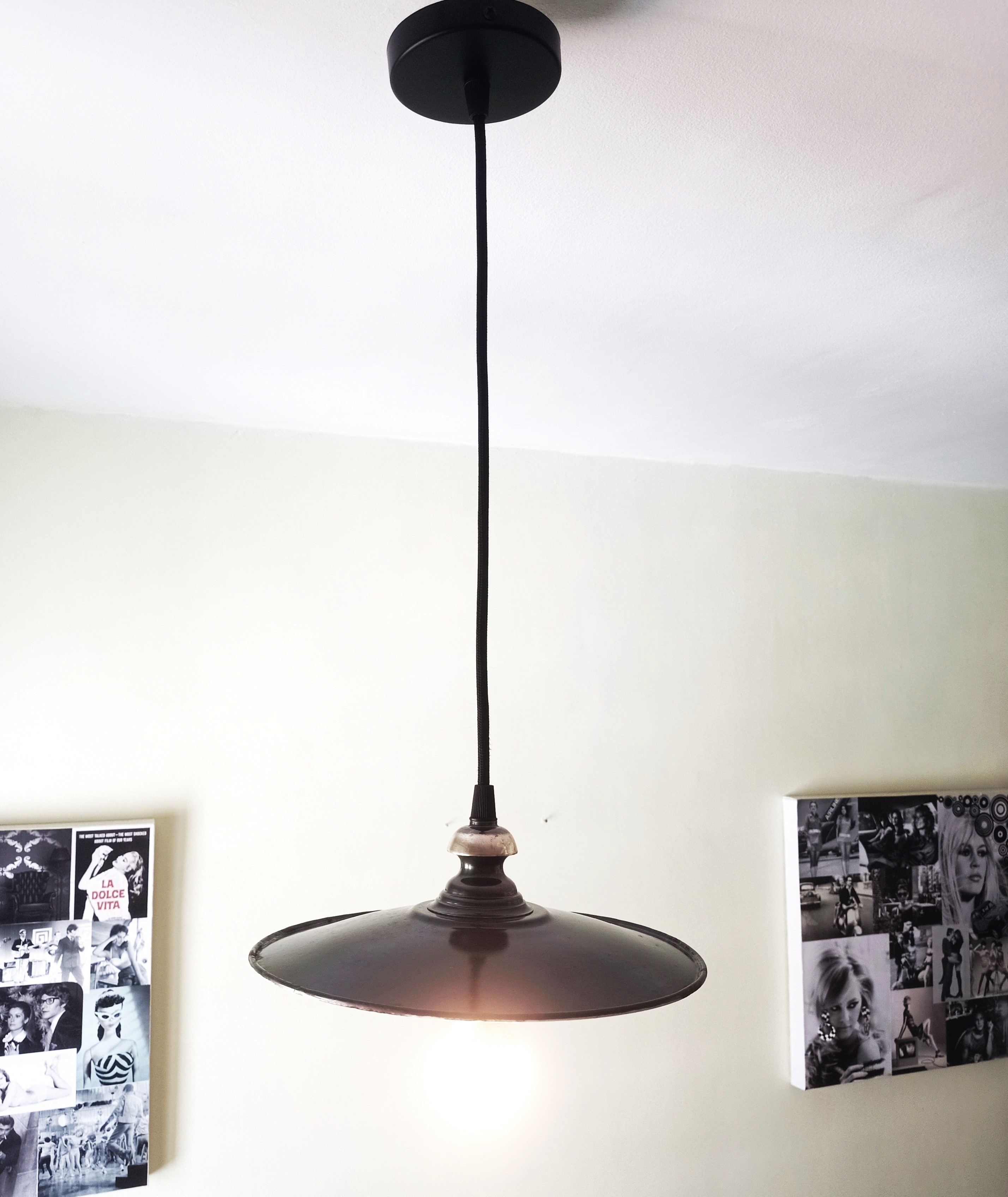 LÁMPARA INDUSTRIAL ESMALTADA NEGRA FRANCIA – 50´S