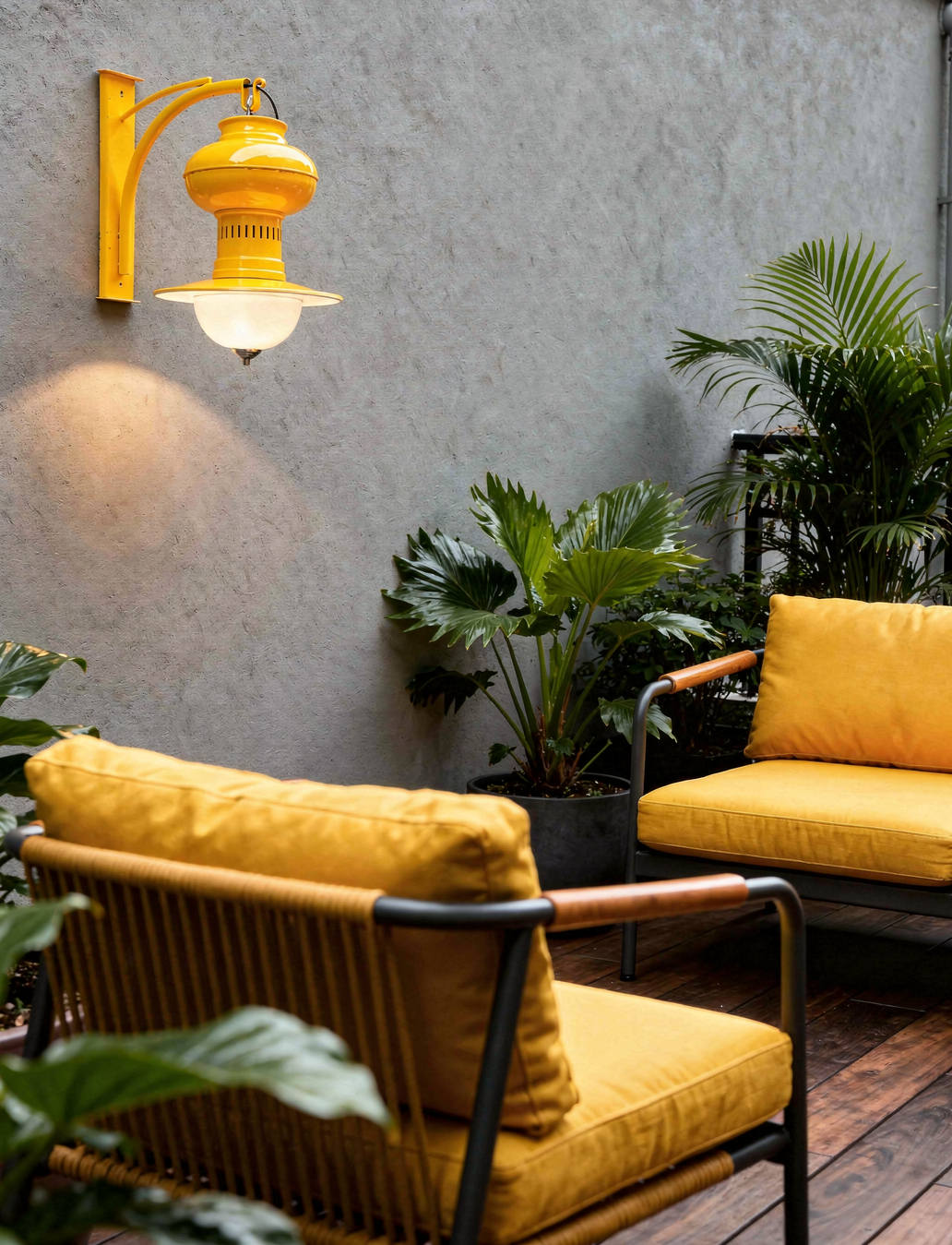 – Espectacular Lámpara Aplique industrial amarilla para interior o exterior