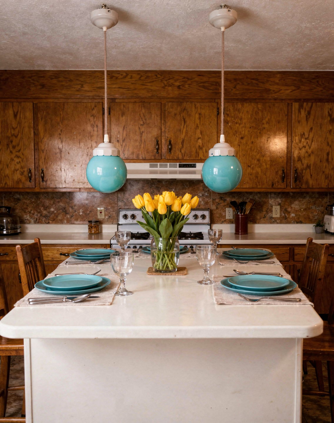 – Base de porcelana sujetando el globo de opalina blanca para un look rústico auténtico
