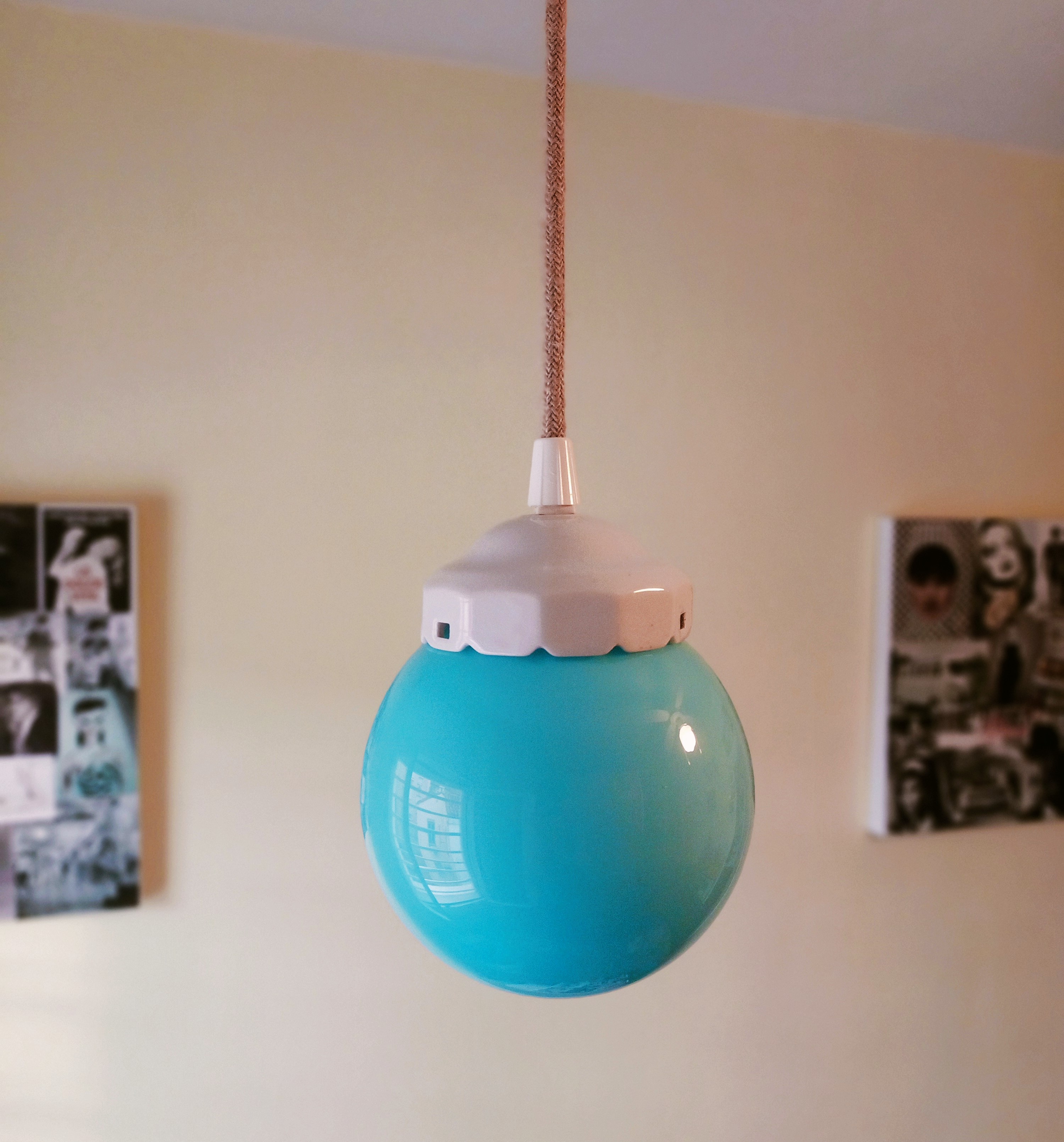 LÁMPARA DE TECHO POP OPALINA TURQUESA ESPAÑA – 70´S