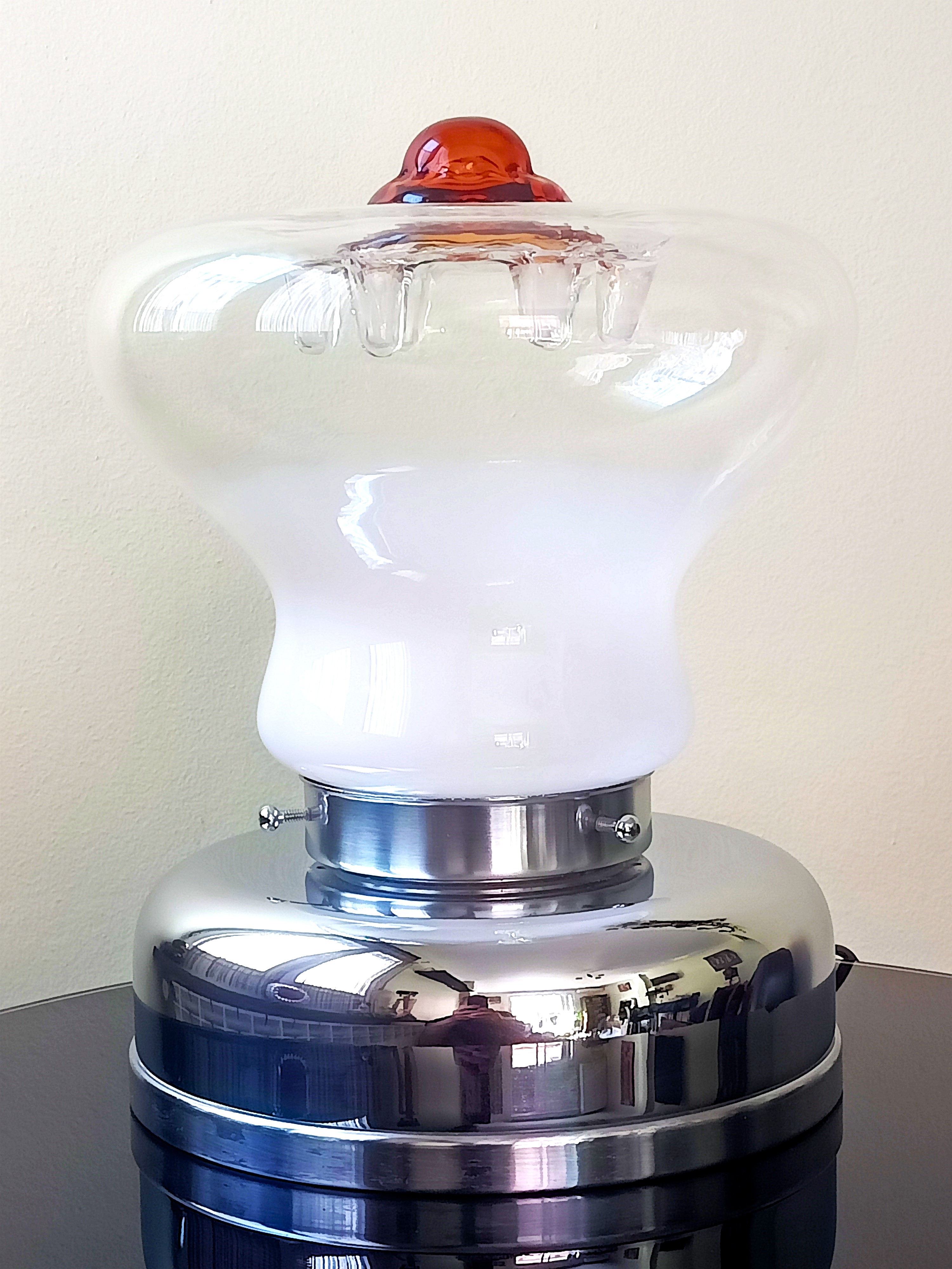 LÁMPARA POP ACERO NARANJA Y OPALINA FRANCIA – 70´S