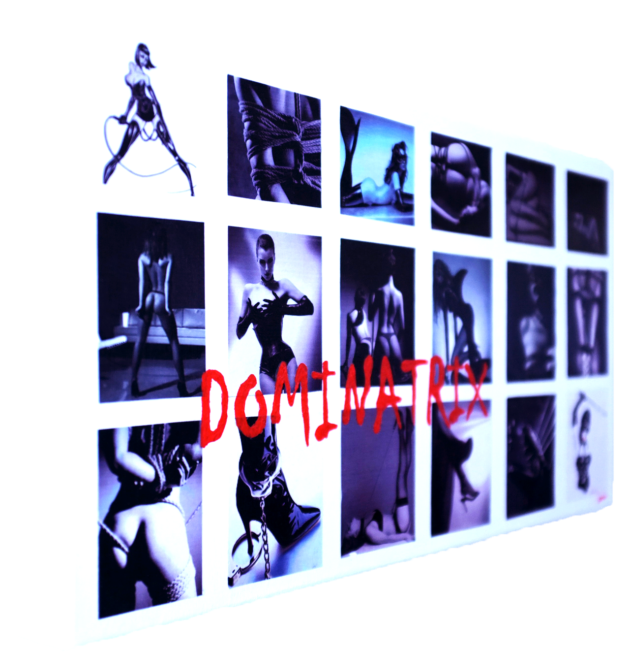 Material: Fotografía sacada del libro «Diesel XXX», letras «Scrabble», Adorno navideño y pintura acrílica sobre lienzo