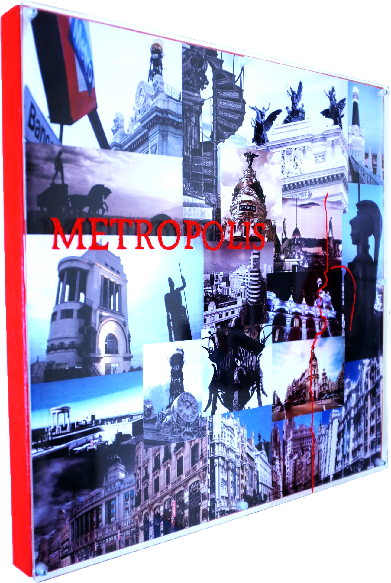 Material: imágenes, metacrilato, pintura acrílica sobre lienzo