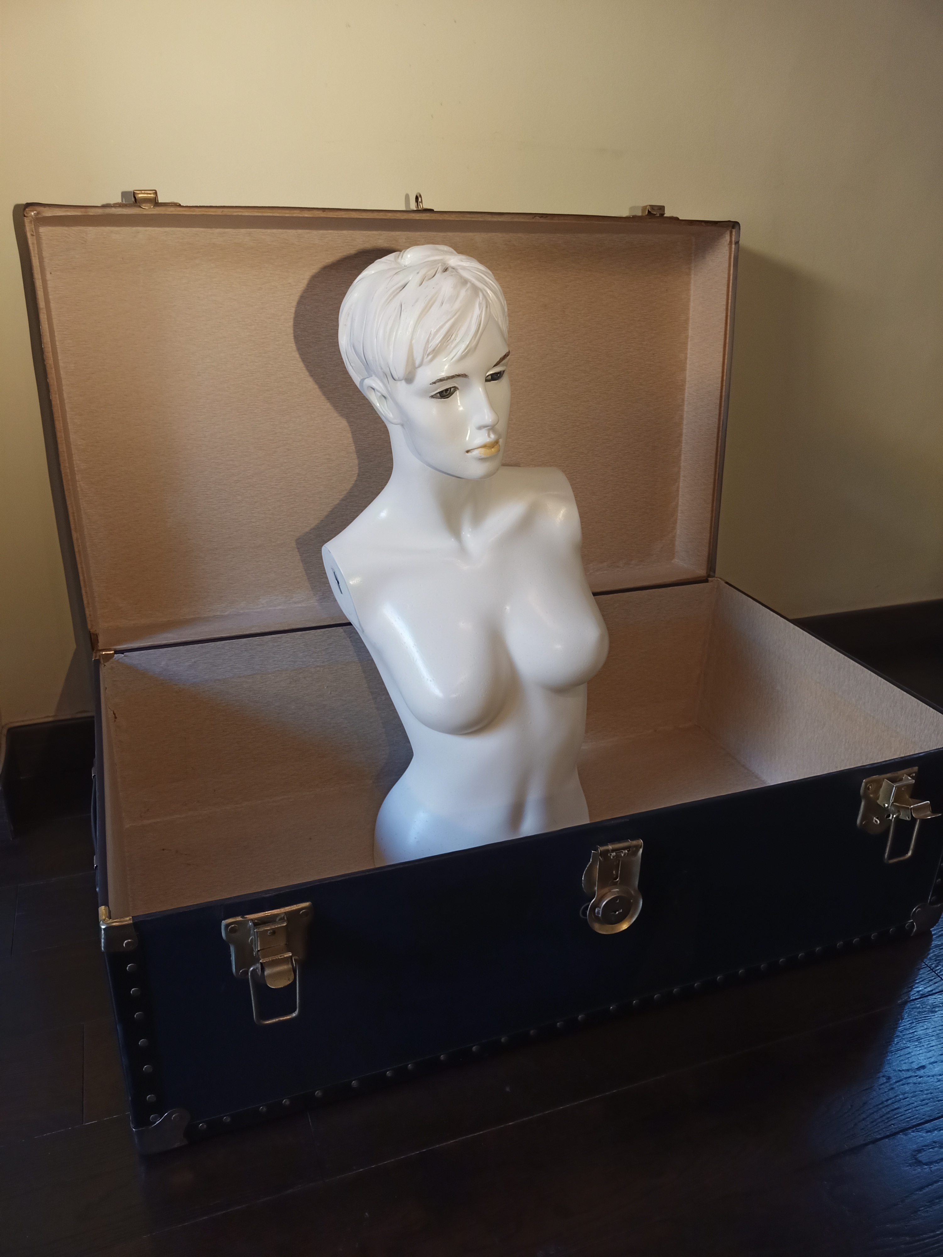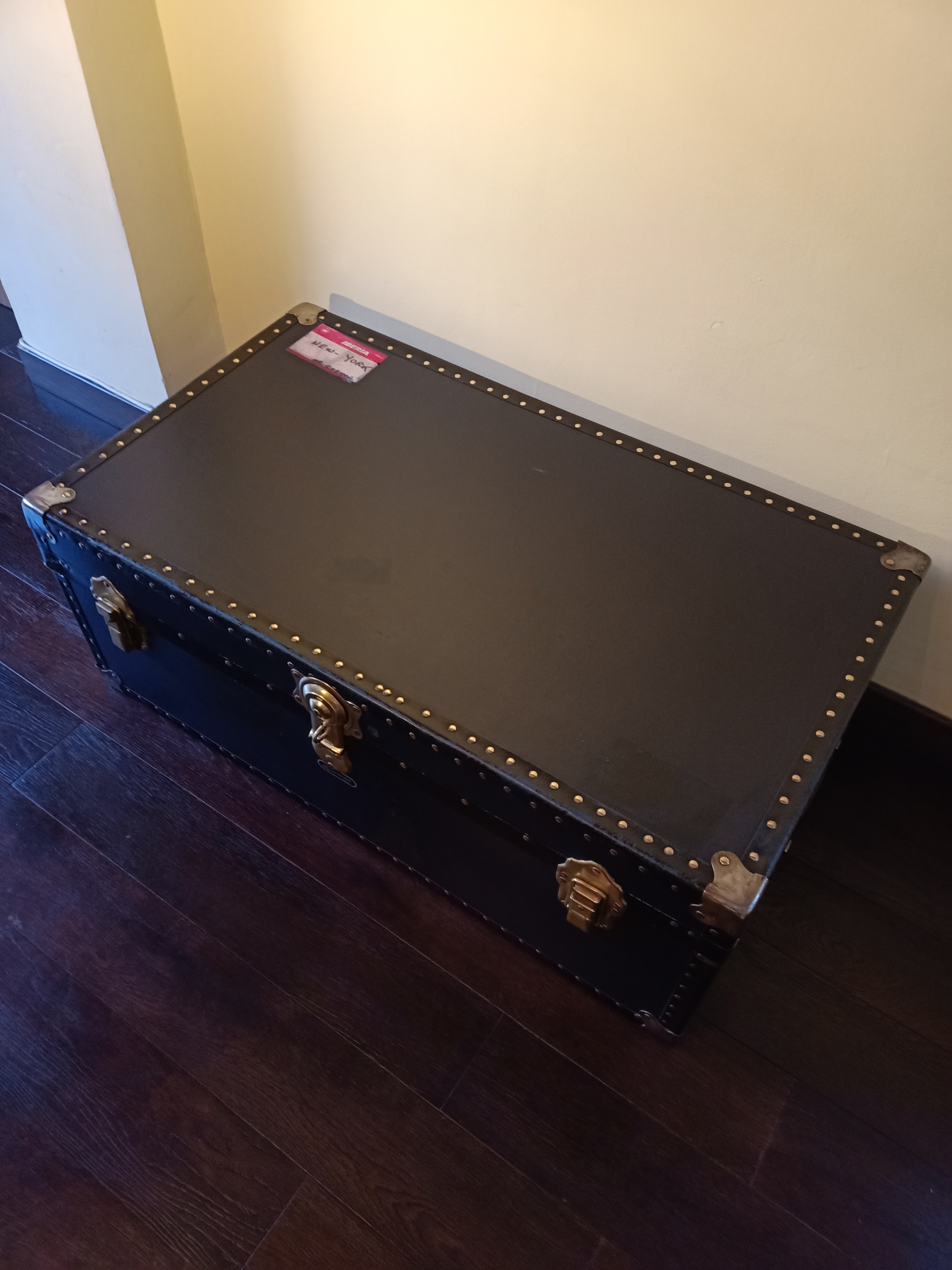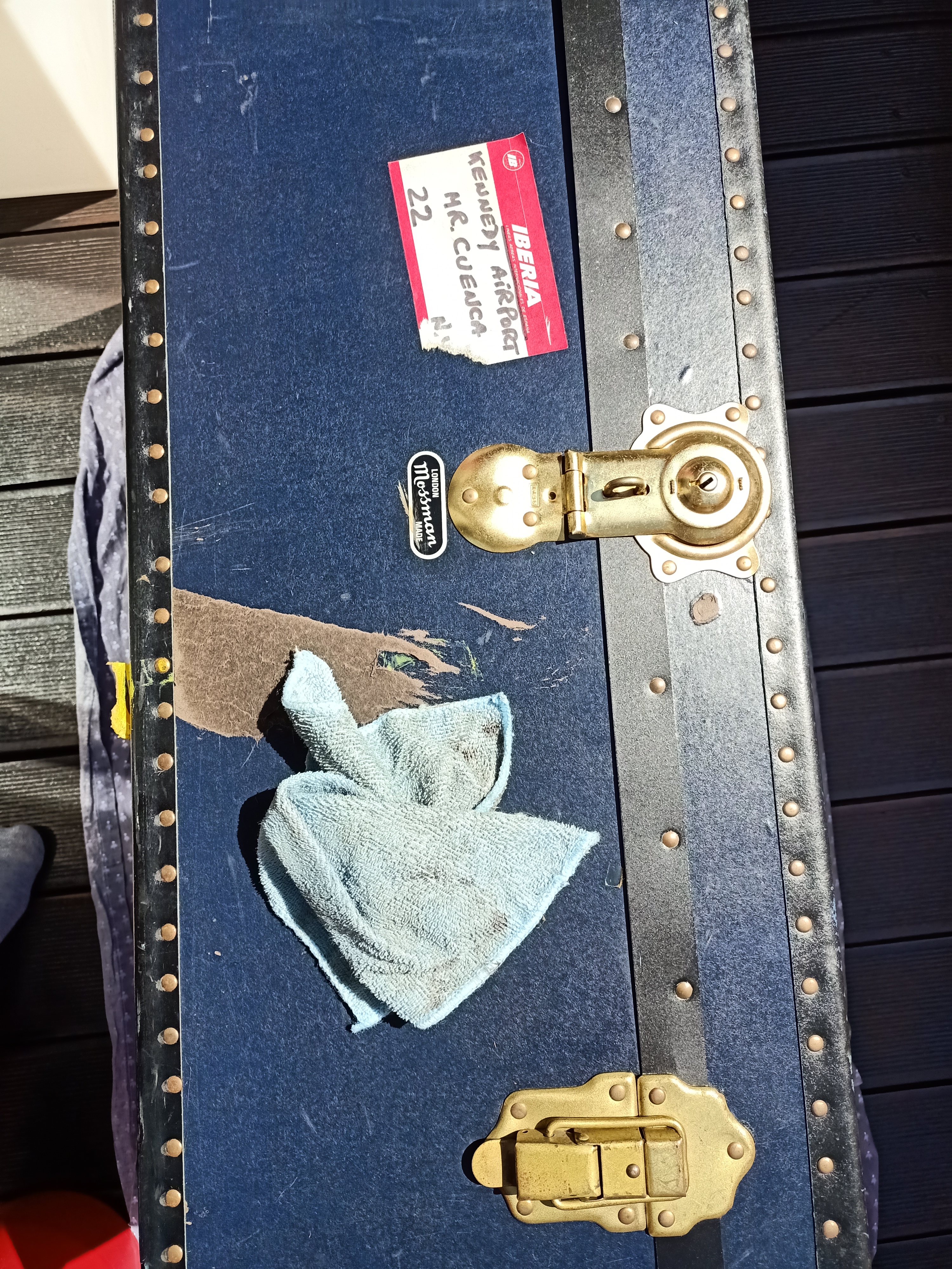 Compré este baúl en mal en Febrero 2021 en Madrid (Barrio Salamanca) y primero le quité toda la tela y rescaté los etiquetas de los hoteles (el alma de este baúl!)