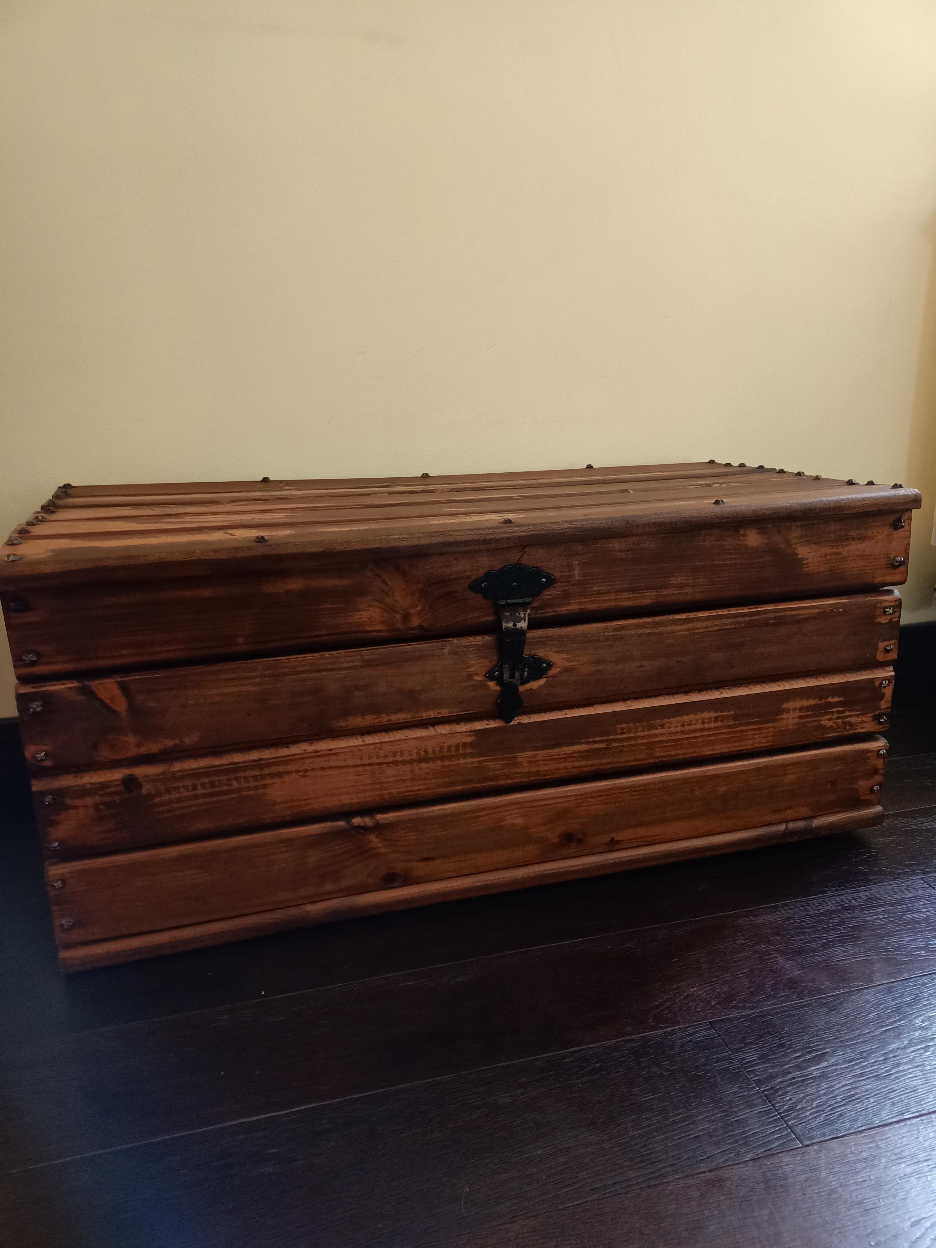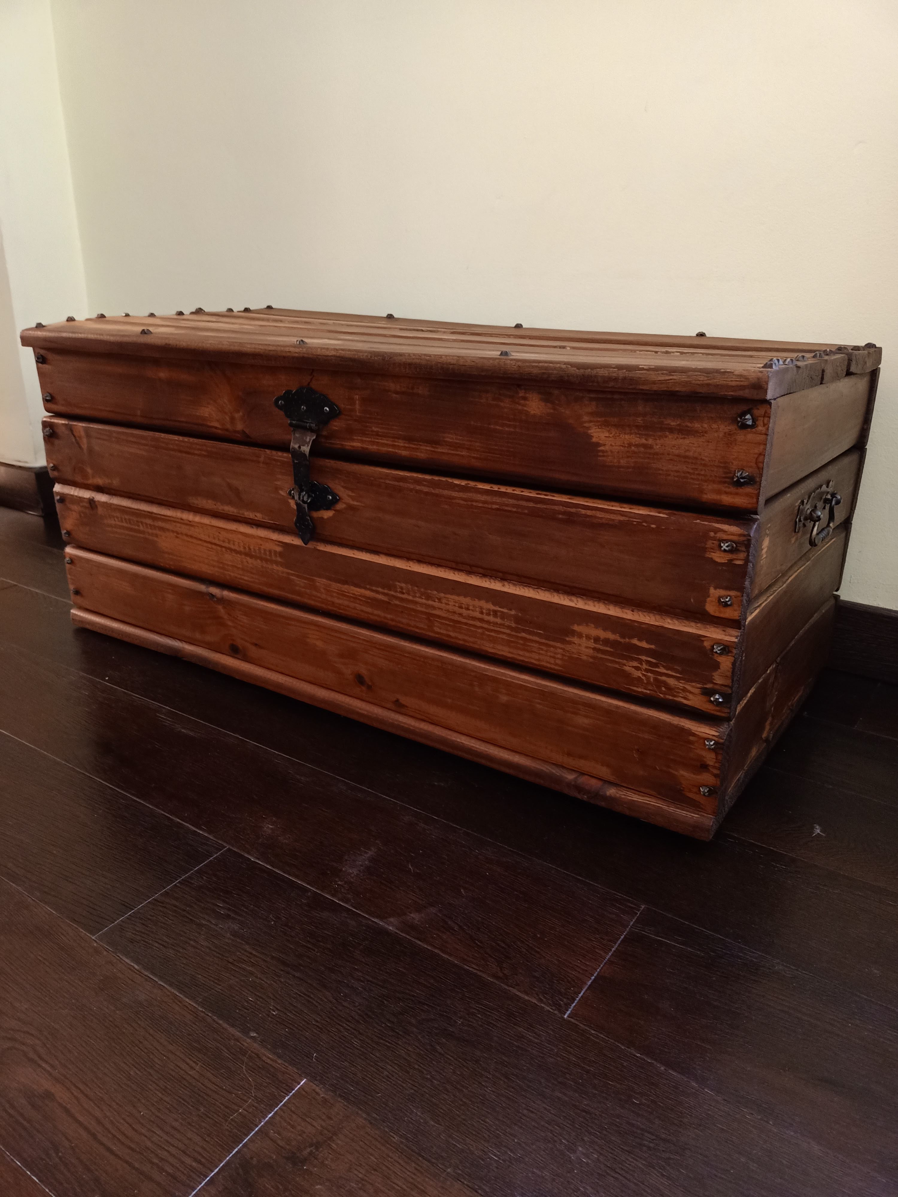 Compré este gran Tesoro en un rastrillo de Hauts de France este verano: madera y herrajes en muy buen estado