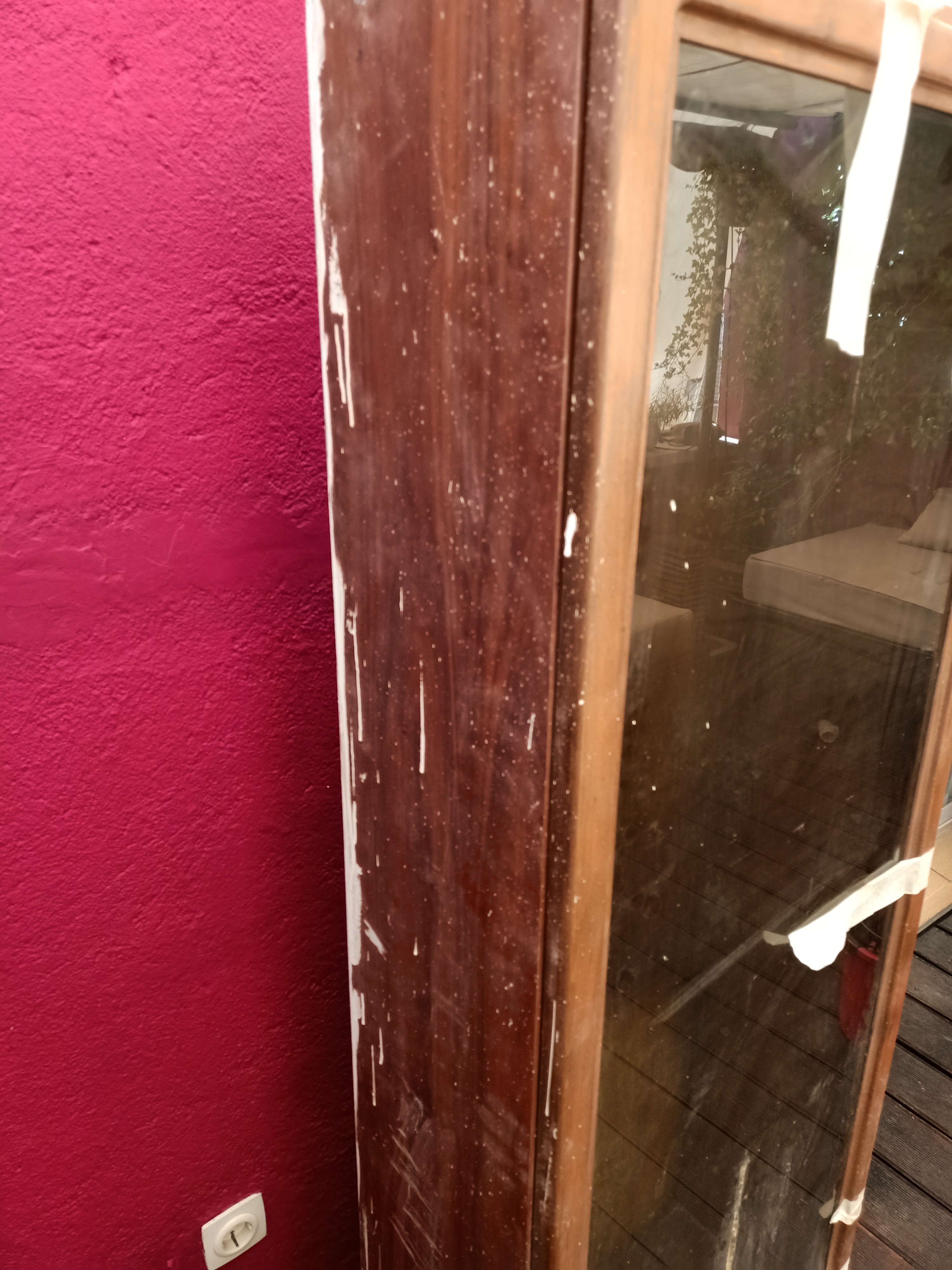 Mi amigo Roberto me regaló este mueble vitrina que recuperó en una obra (muchas gracias Roberto), manchado de pintura y sin baldas de cristal en su interior