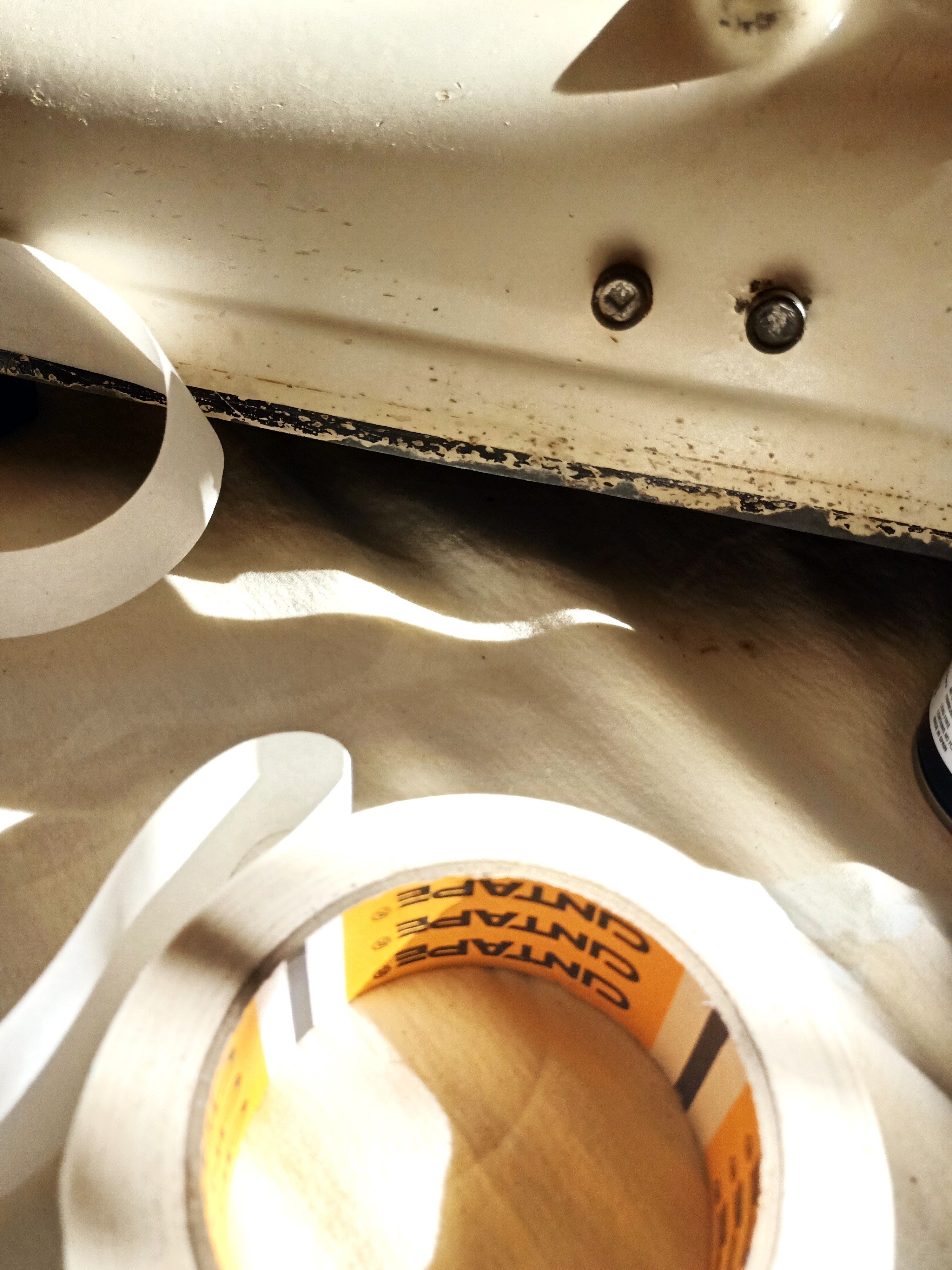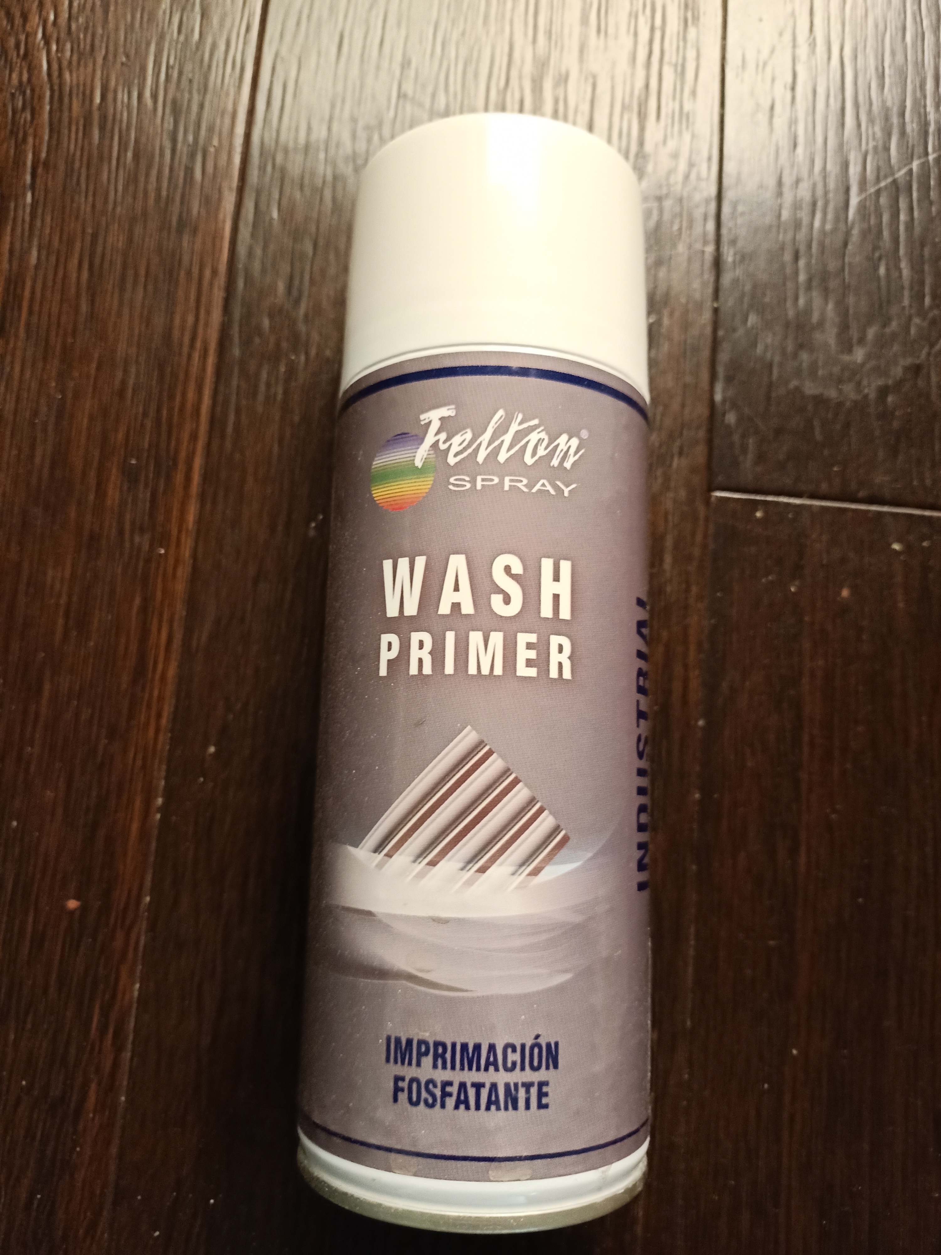 2 Protege el cristal y las bisagras con un celo adhesivo y le eché una buena capa de imprimación fosfatante o «Wash Primer» en formato spray (más rápido que con una brocha).