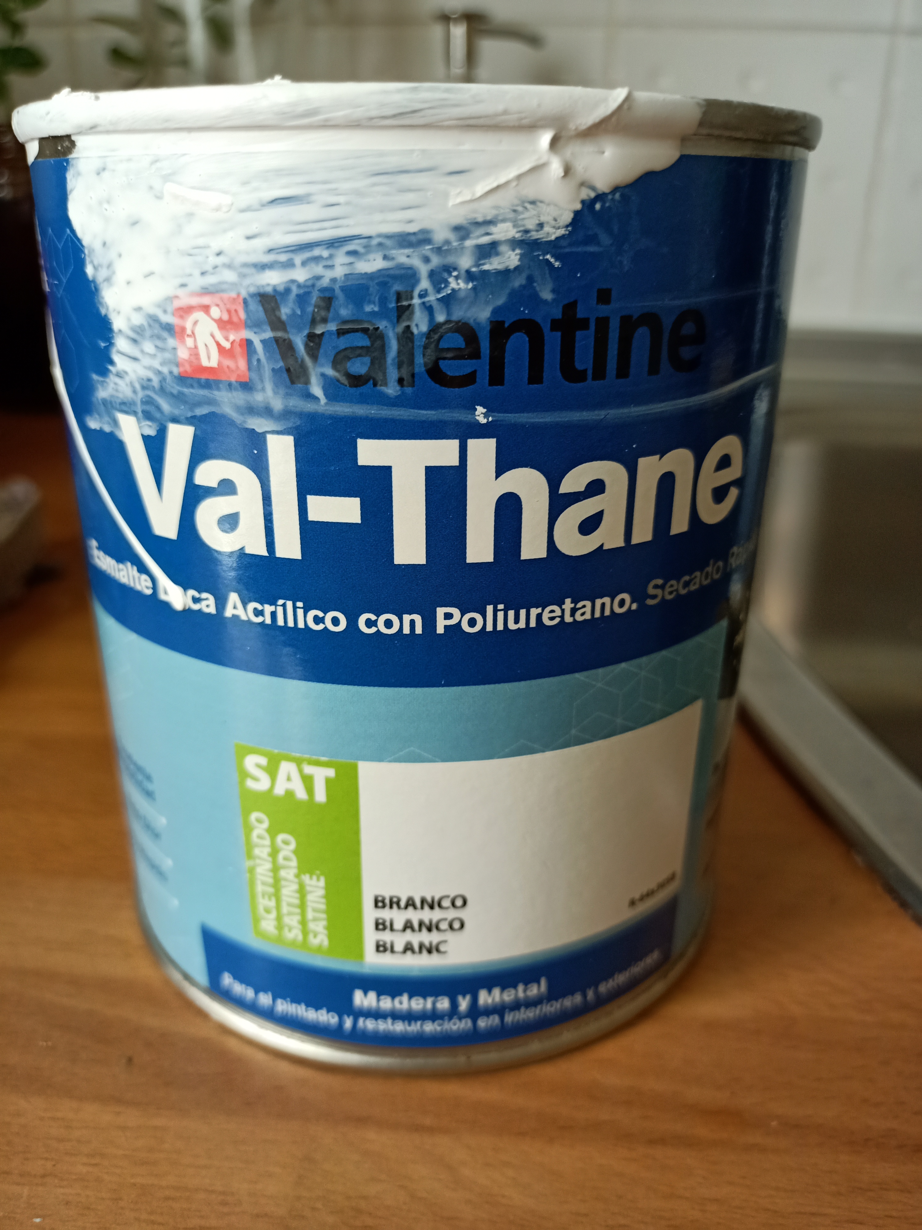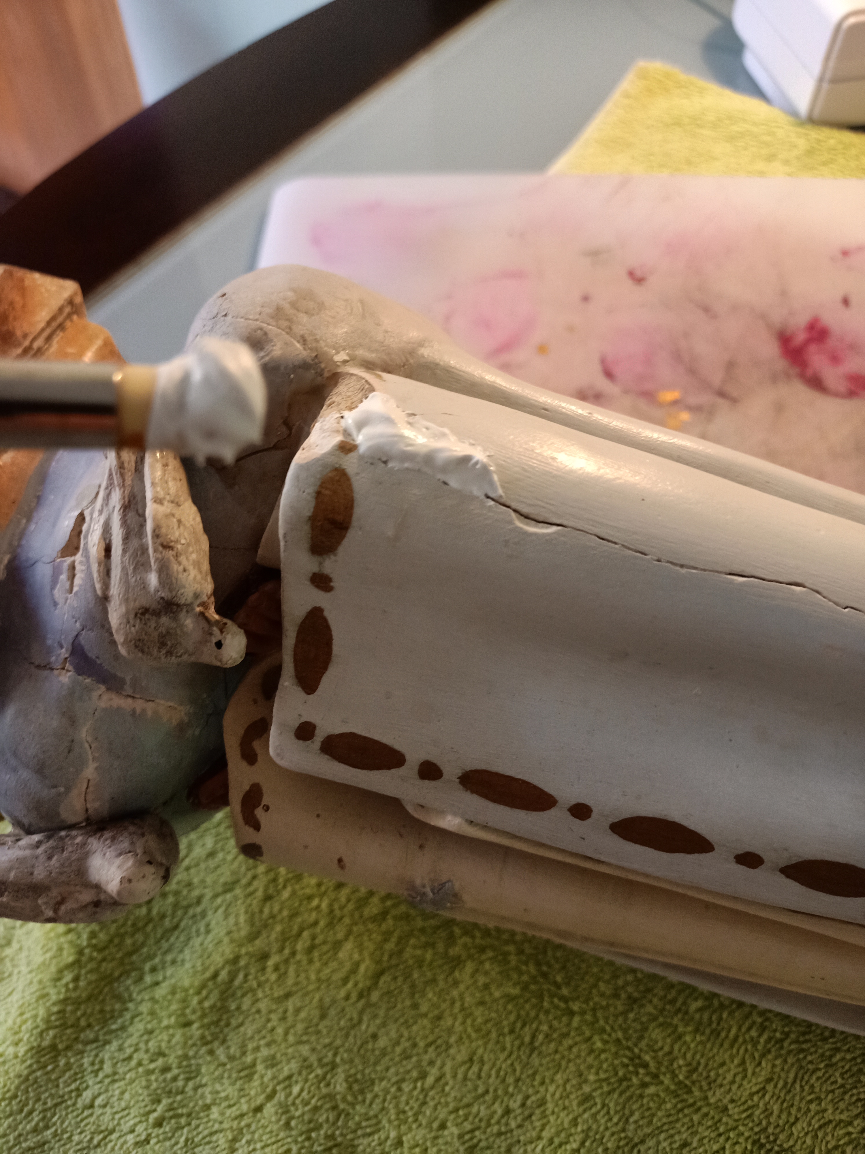 3 Dejé secar un par de horas y luego con una brocha apliqué una capa de pintura acrílica blanca satinada