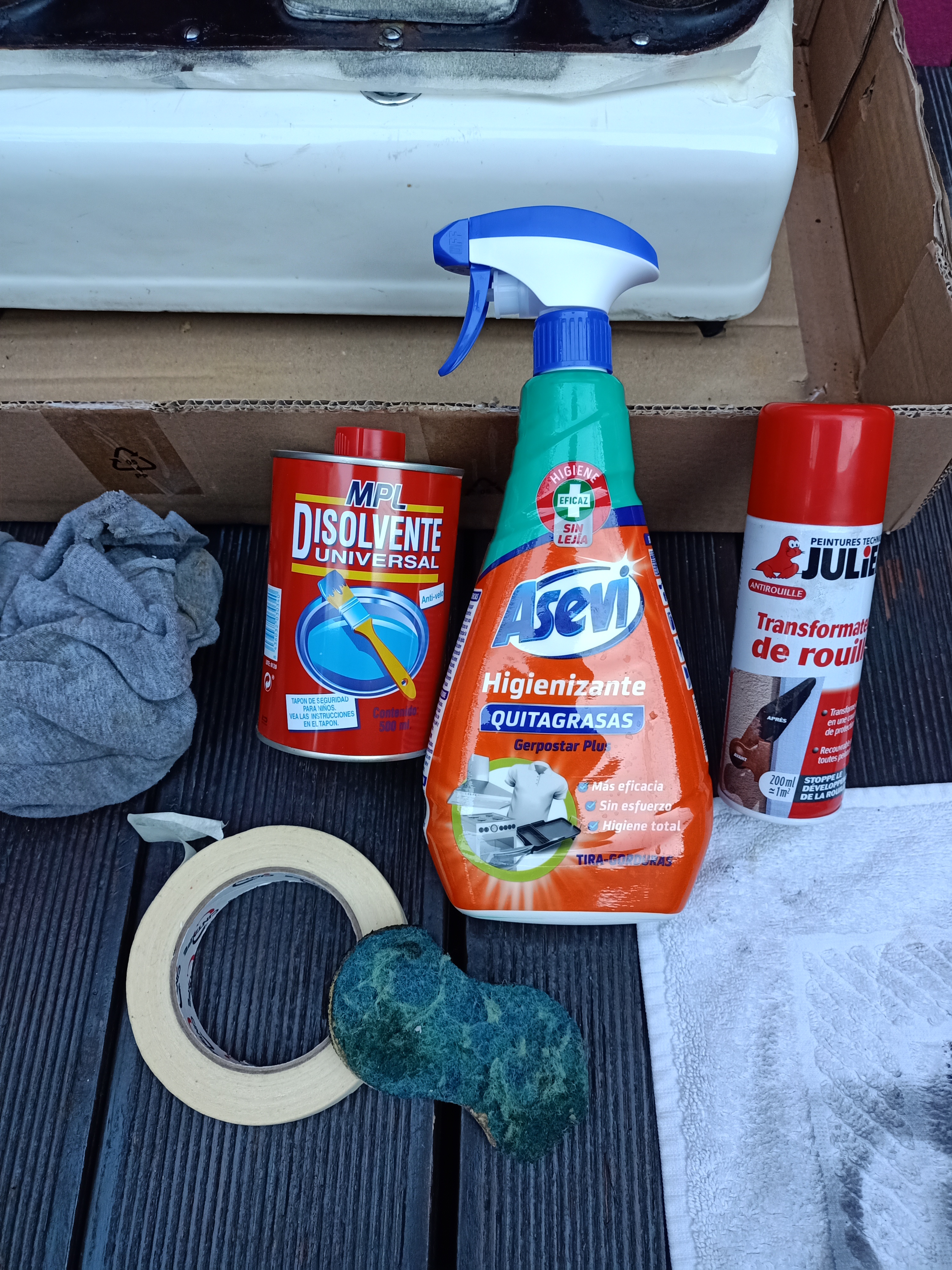1 Empecé con una buena limpieza para quitarle las manchas de humedad, el polvo y alguna etiqueta (sin mayor interés)