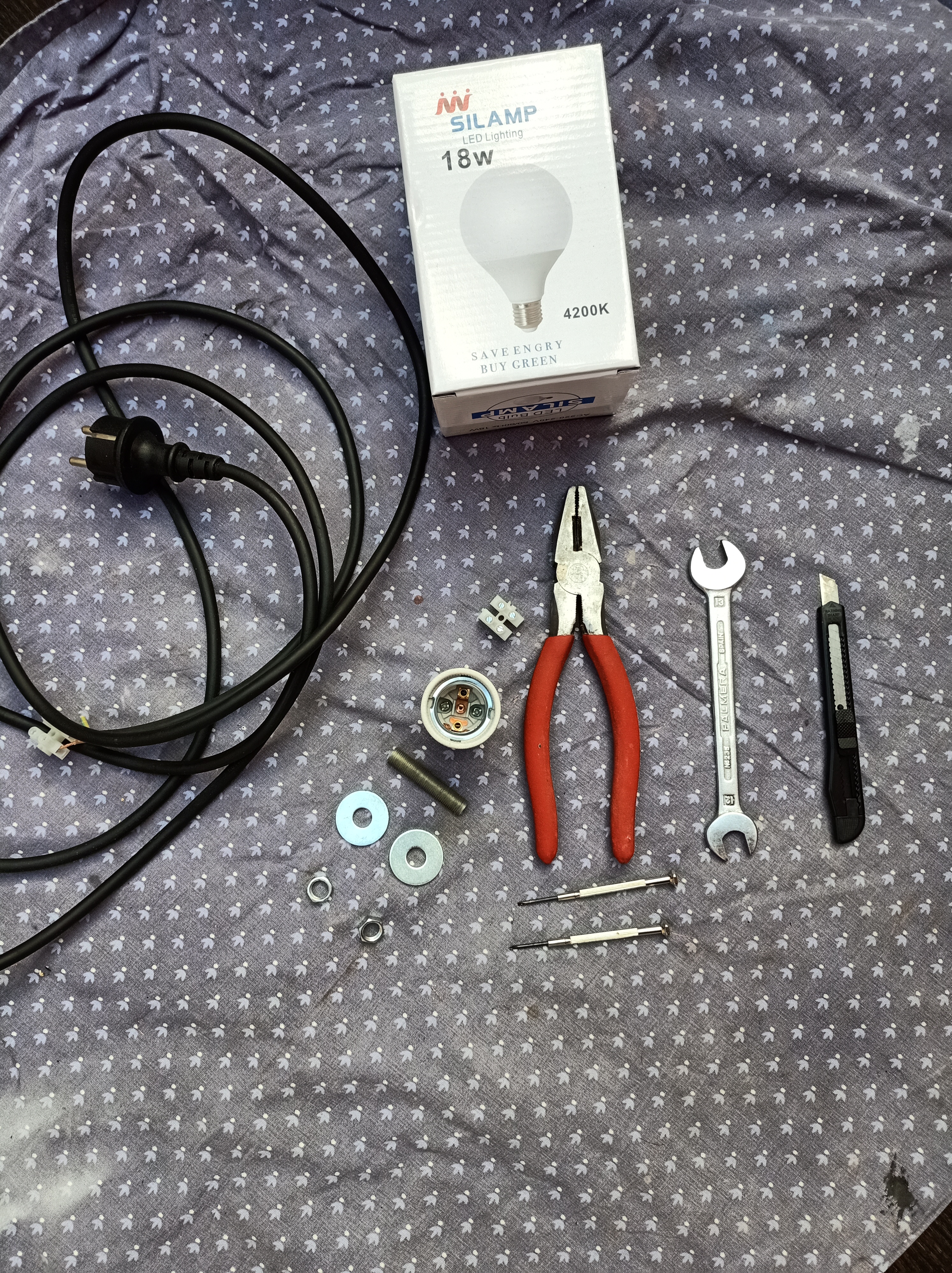– el cable (no utilizar los cables antiguos si están desgastados). Existen muchas opciones de cables de tela (trenZados y de todos los colores, cáñamo, etc…)