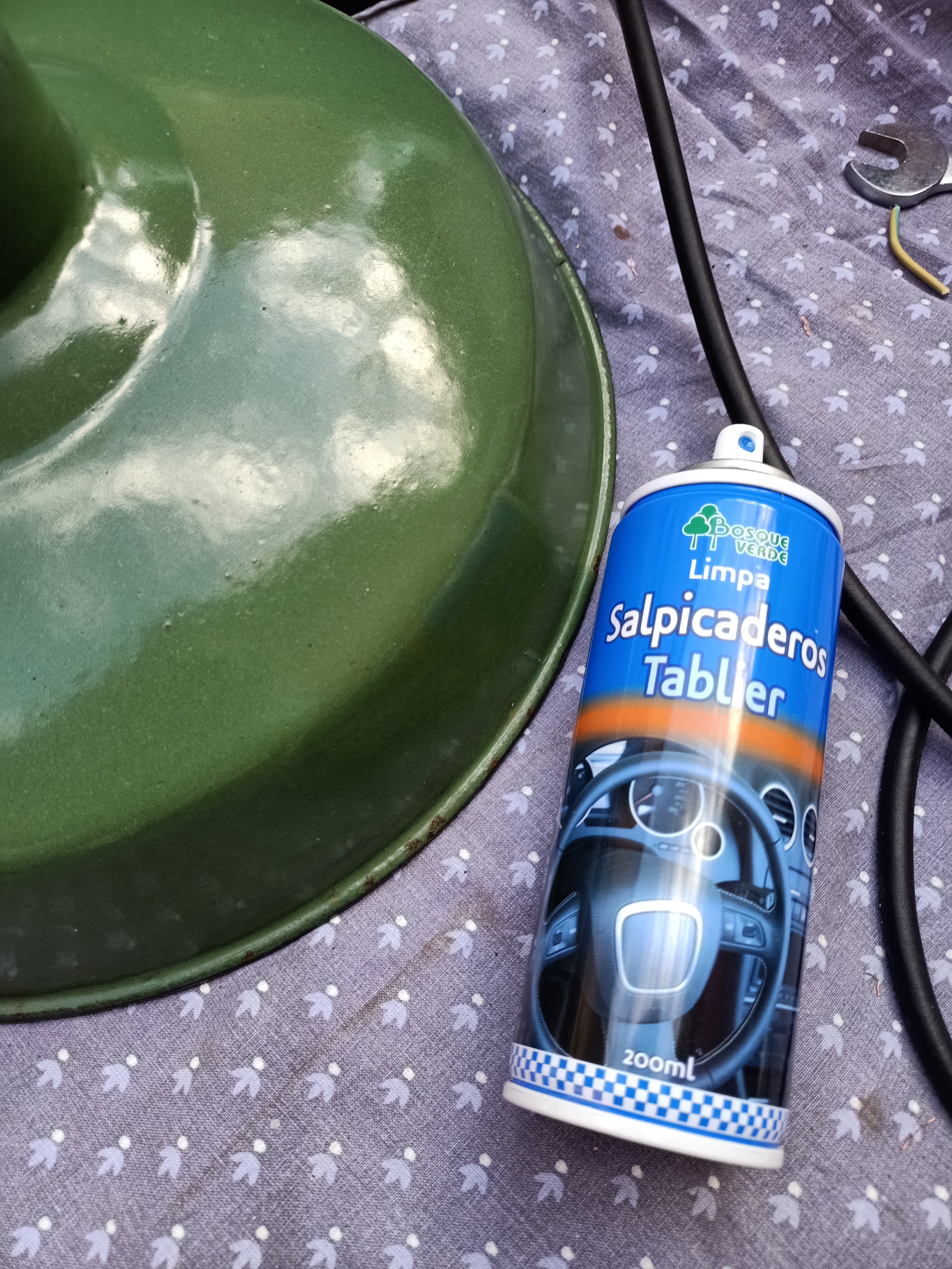 5 Una vez secado, quitar la cinta de carrocero y el plástico y proceder al cambio de cable: Hemos reciclado el cable negro de un antiguo electrodoméstico