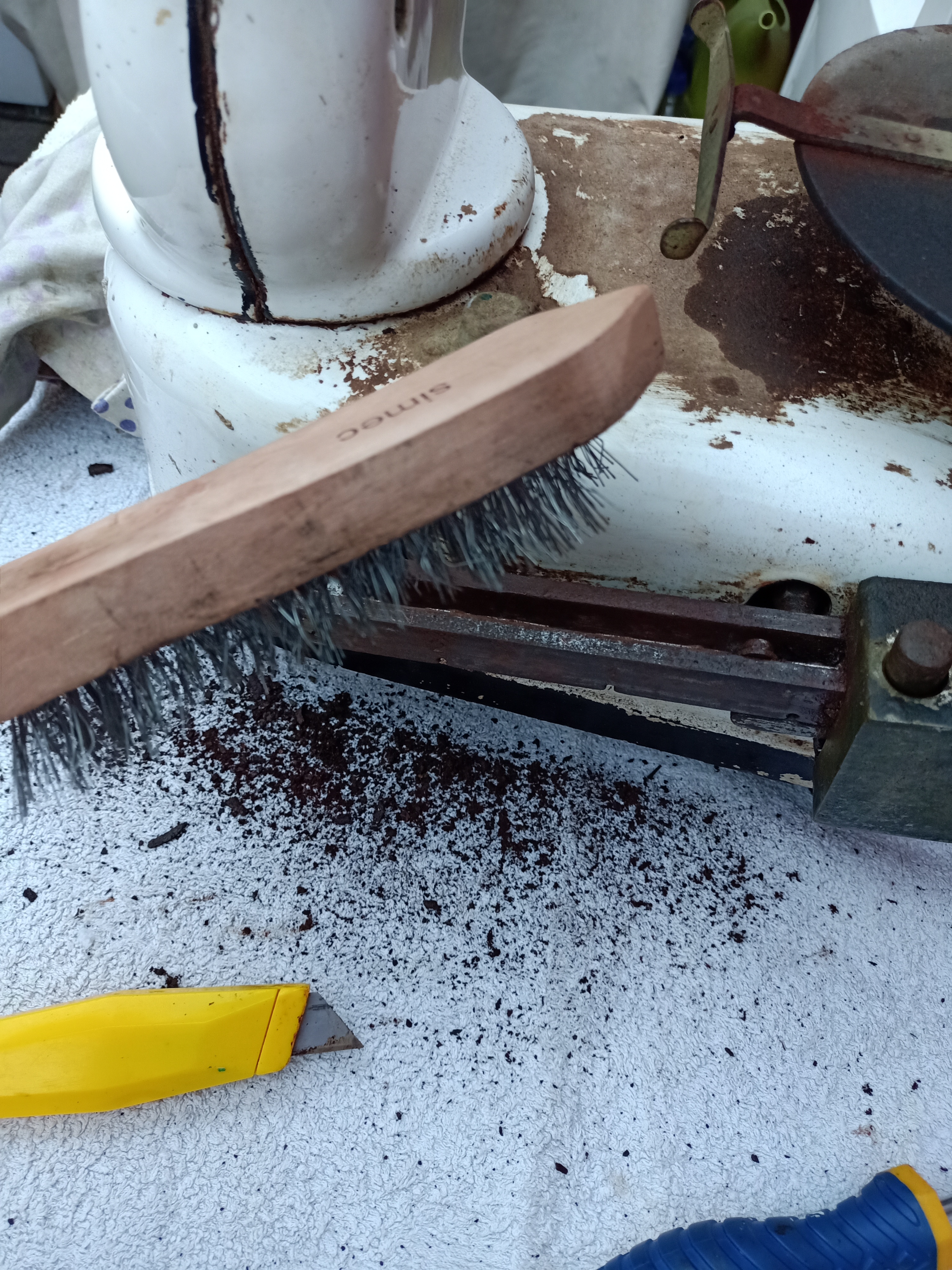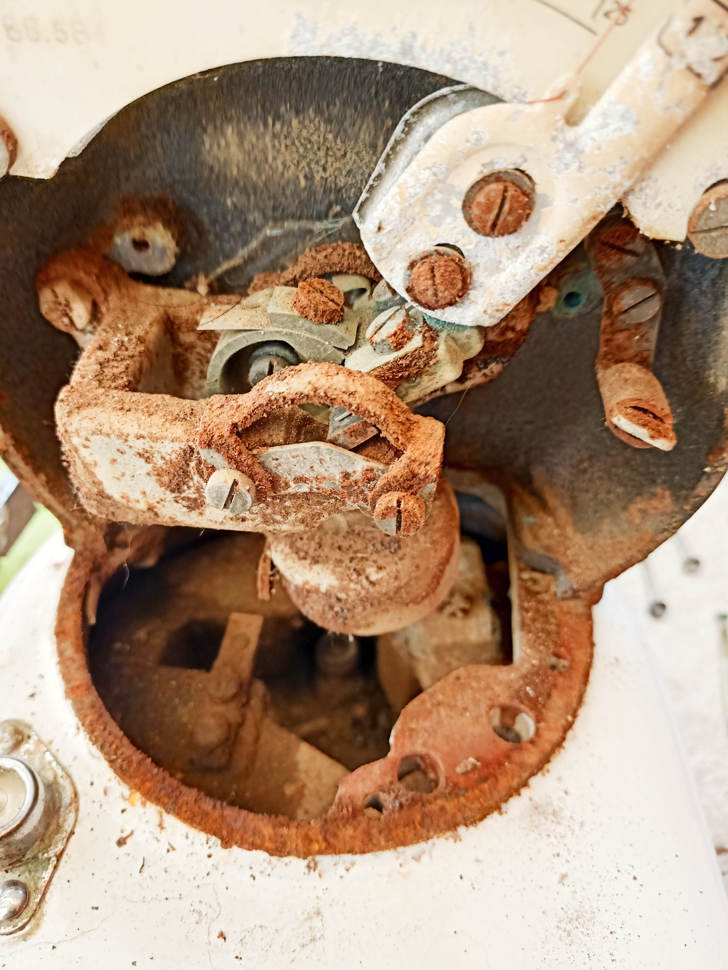 3 Cepillar la corrosión del mecanismo interior y vaciar la suciedad acumulada en su interior a lo largo de los últimos 70 años