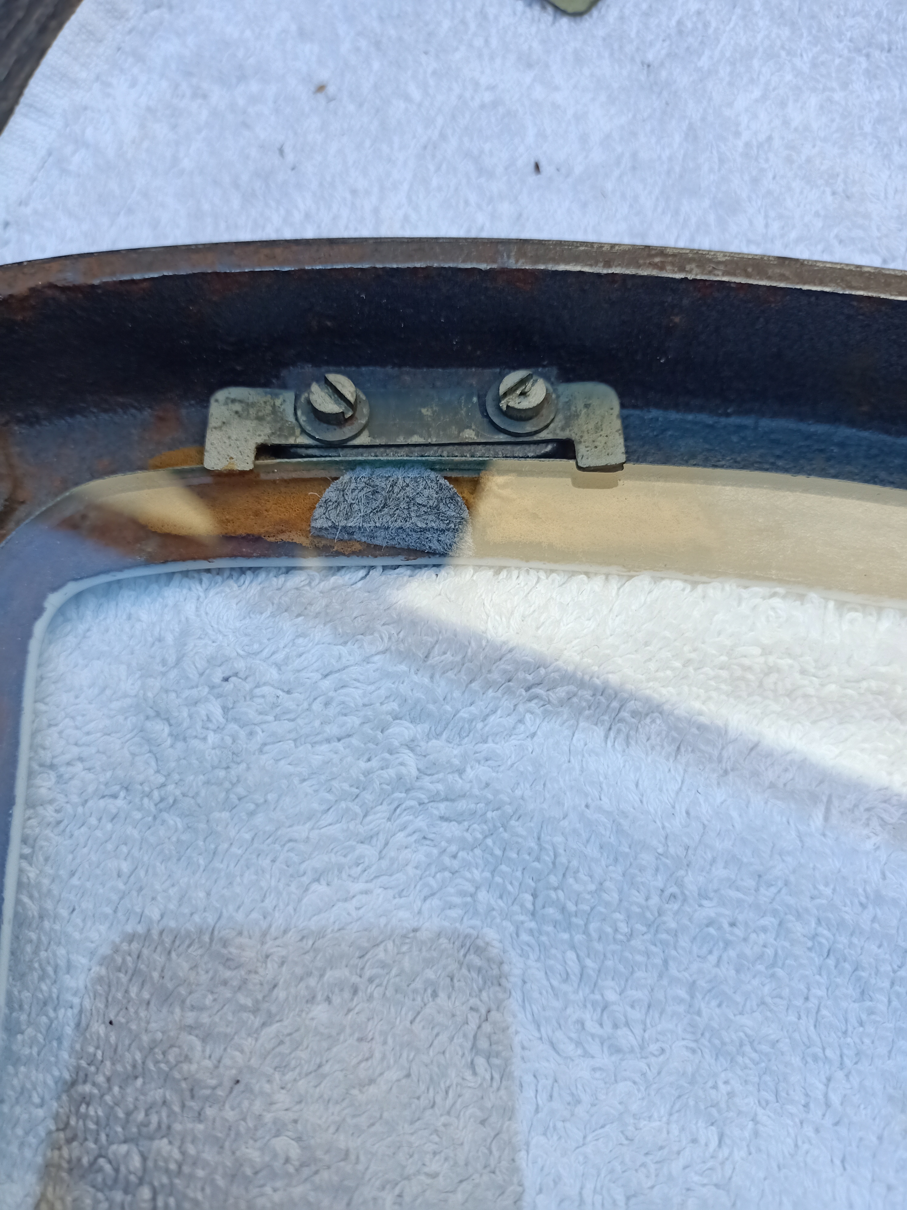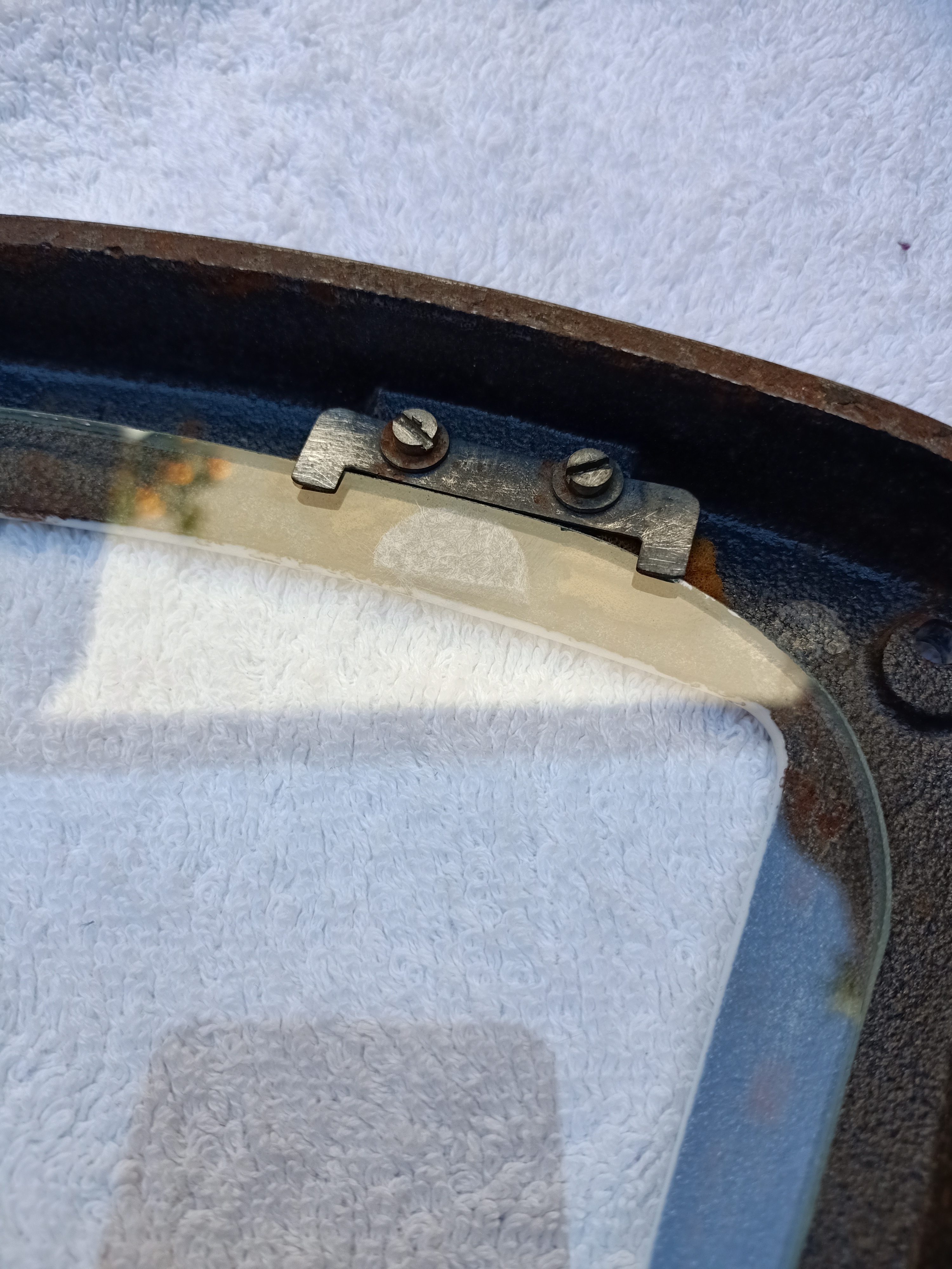 1 Quitar los trozos de cristal, limpiar la grasa acumulada en su superficie y lijar / cepillar la corrosión