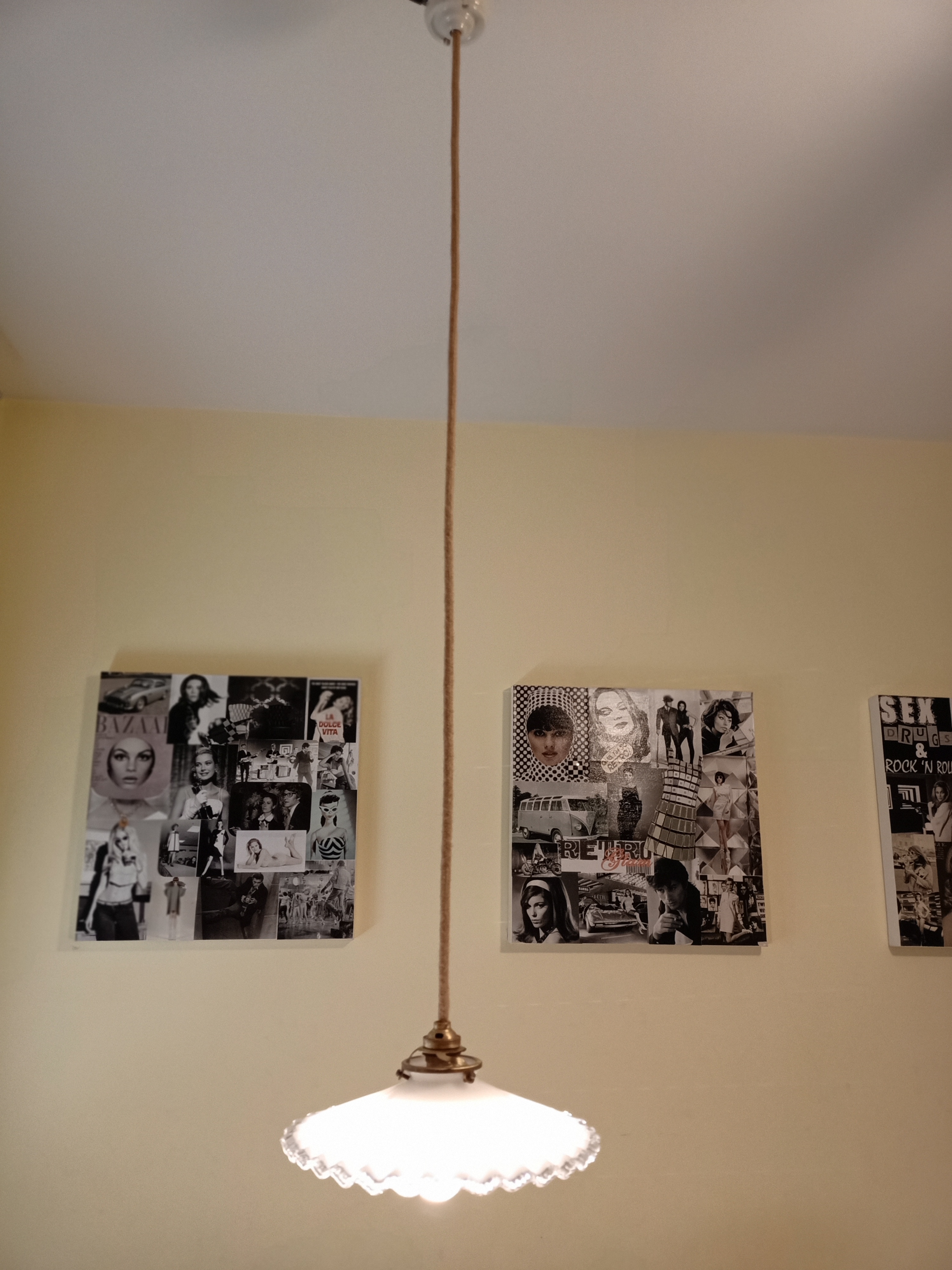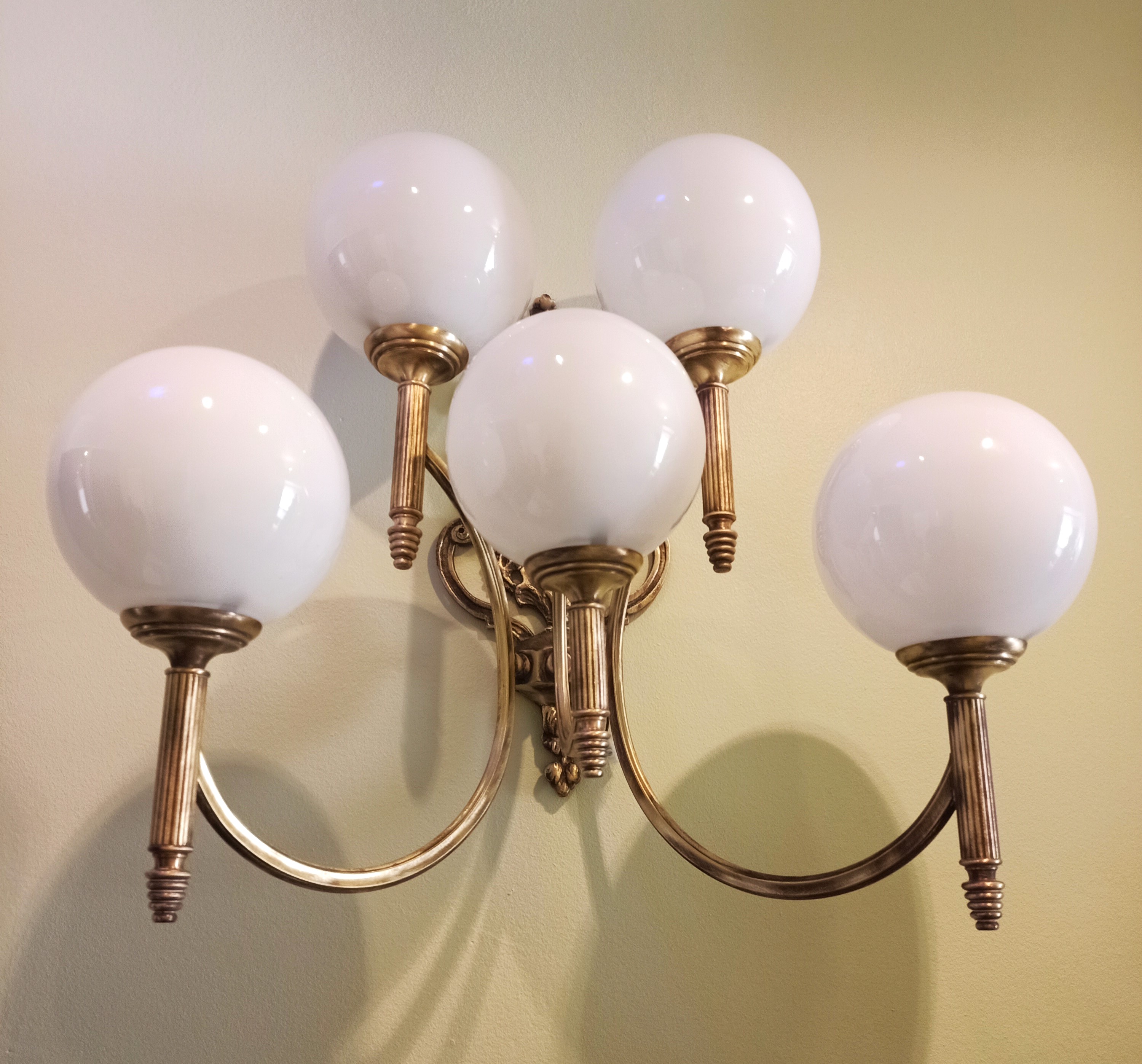3- Hemos comprado 5 Globos de opalina blanca típicos del periodo Art Déco y así ha quedado… Una J.O.Y.A!