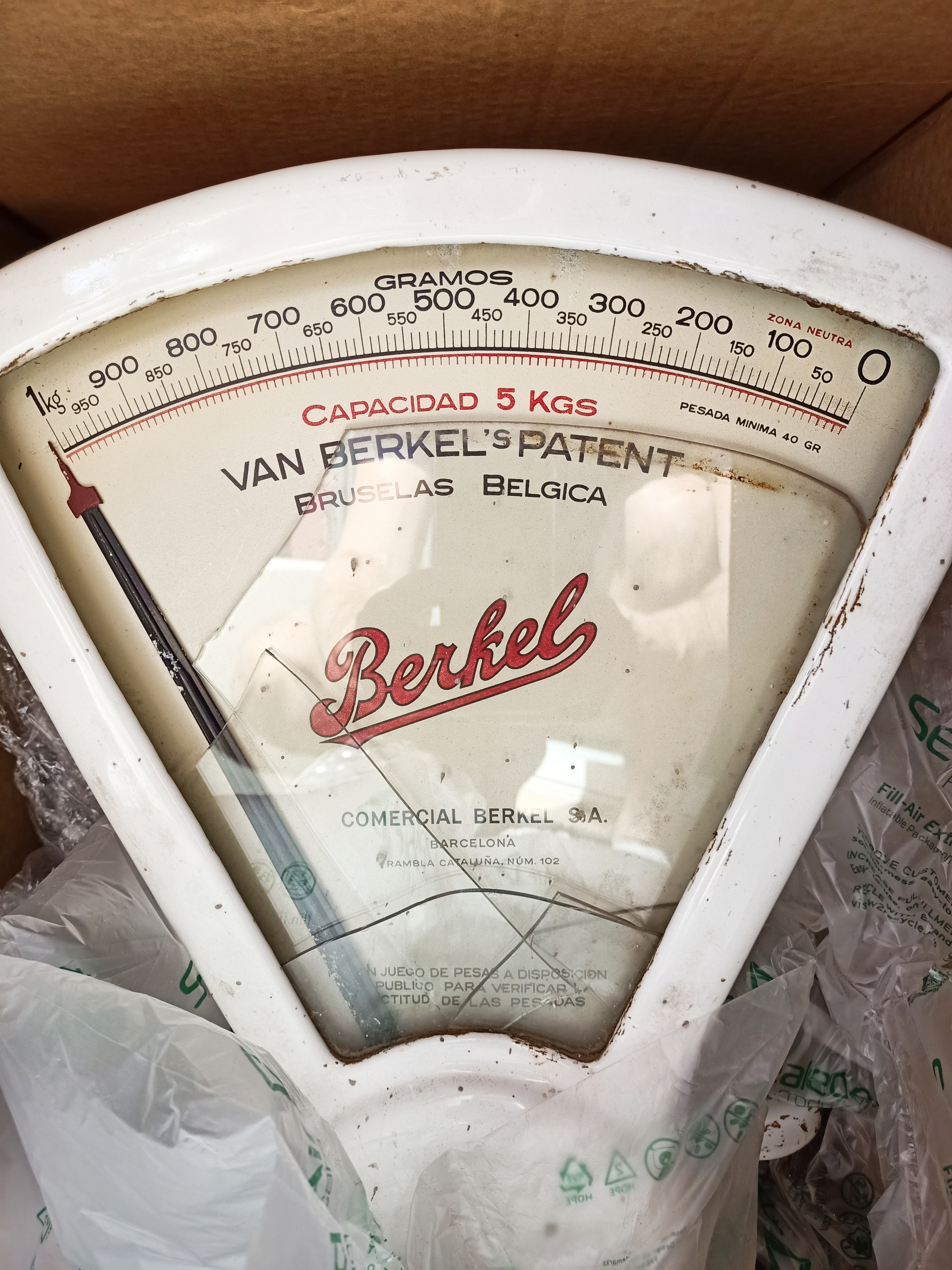 Rescaté esta Báscula Berkel 5Kg en muy mal estado en una granja de Cataluña: estaba llena de corrosión y de grasa, los cristales estaban rotos, 2 de sus patas rotas, el mecanismo bloqueado,…