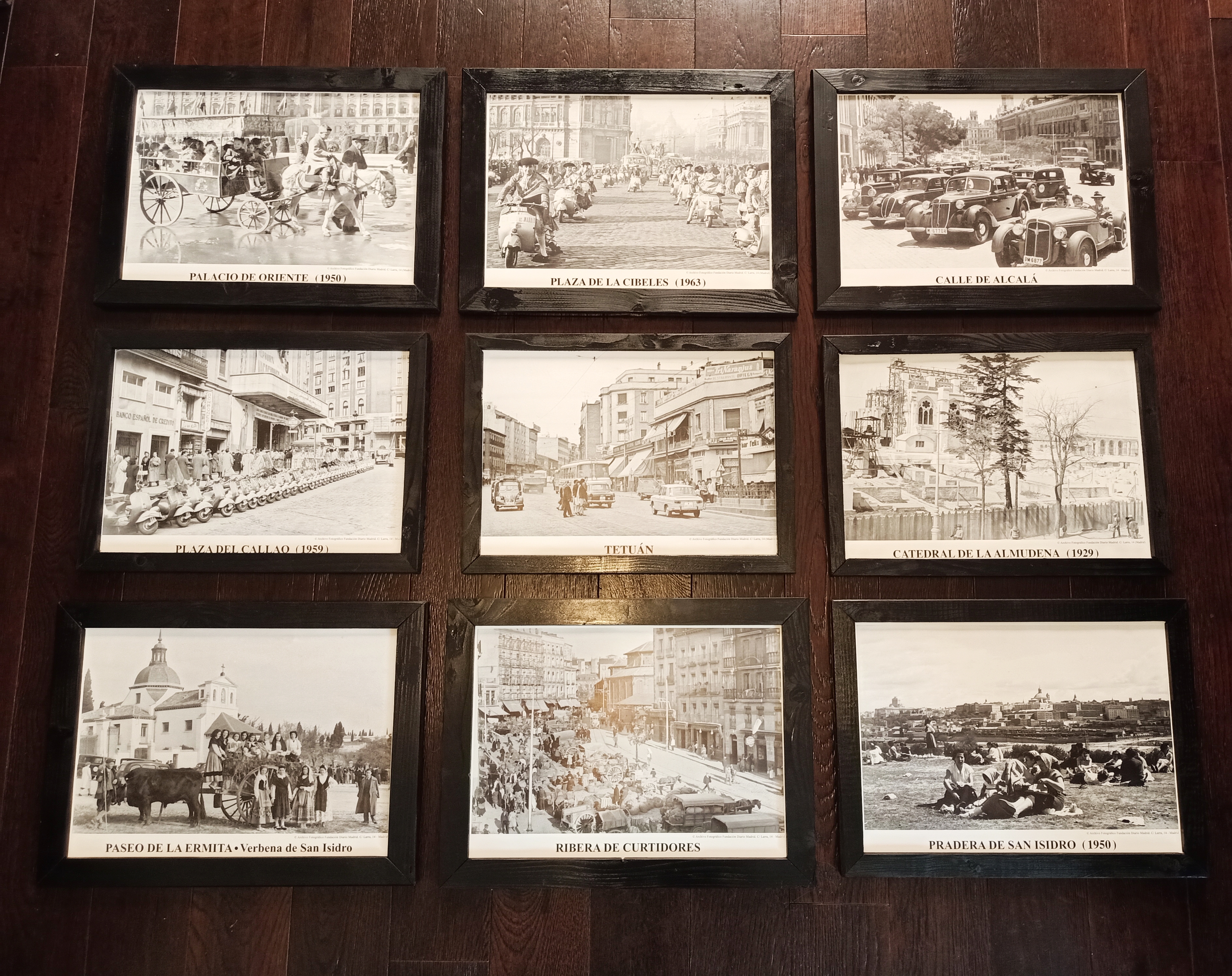 Para un encargo compré estas 9 láminas del «Madrid Antiguo» enmarcadas en marcos rústicos, algunos en mal estado y no encajaban con la decoración de su nuevo hogar…