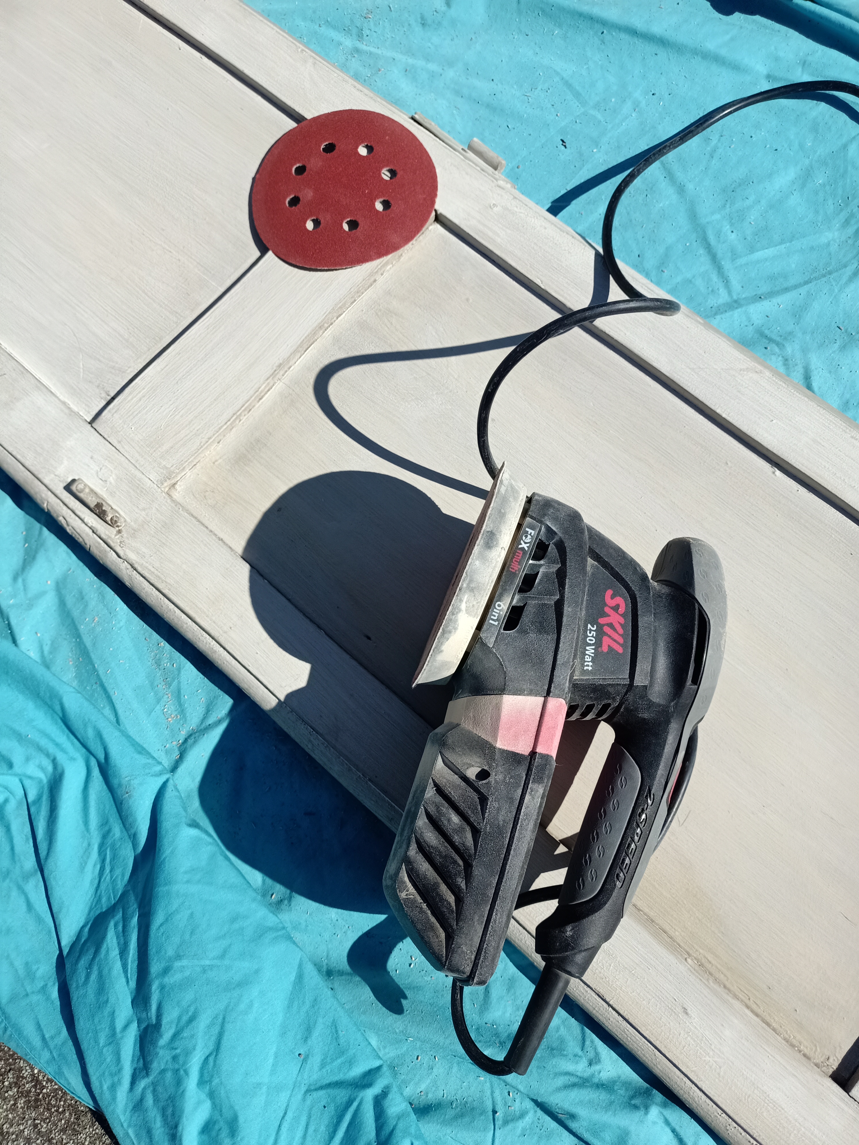 3 Pasamos a la fase de lijar (exterior e interior) para quitarle el barniz antiguo, las manchas y marcas del tiempo y conseguir una superficie «suave y homogénea»