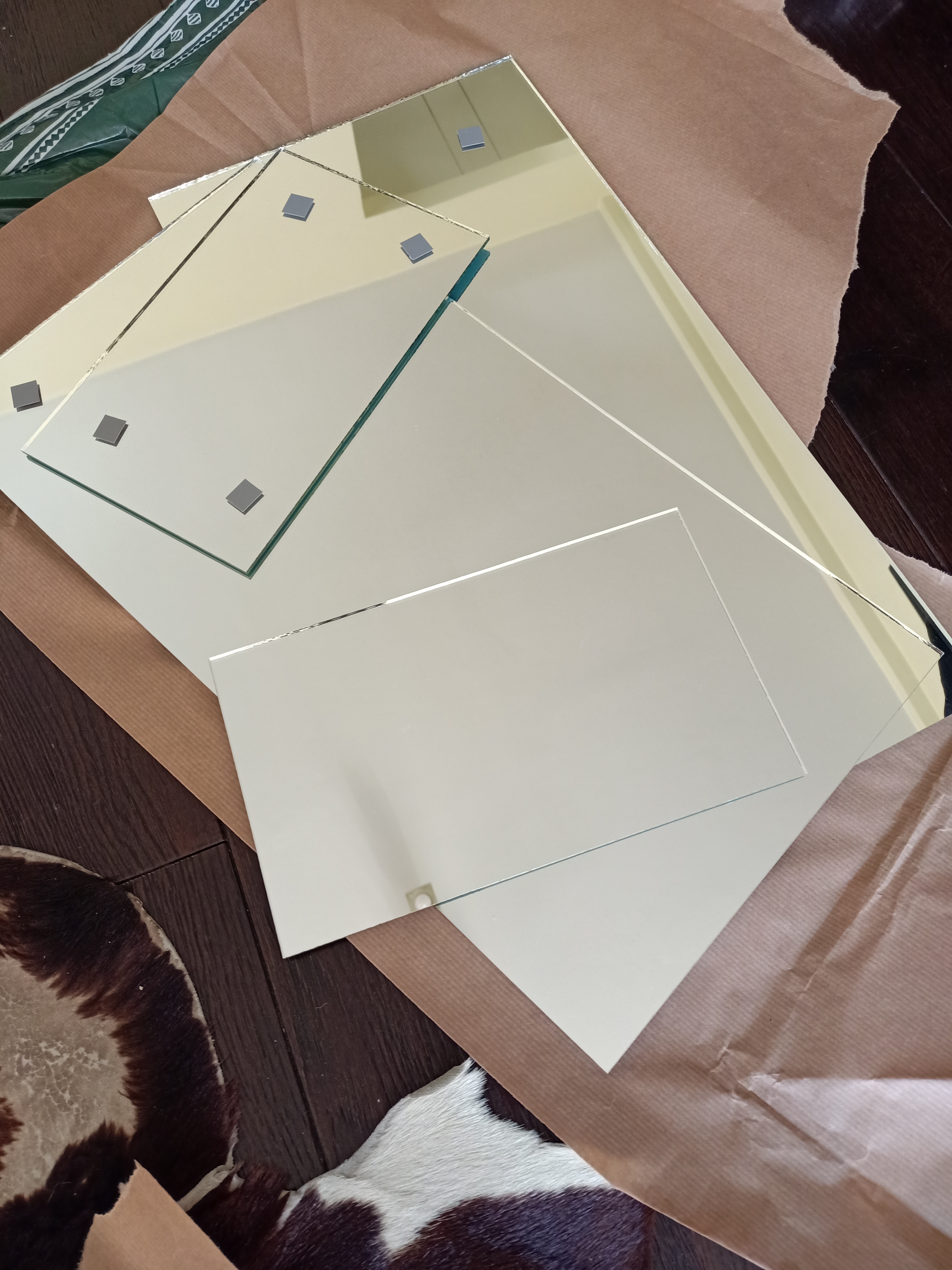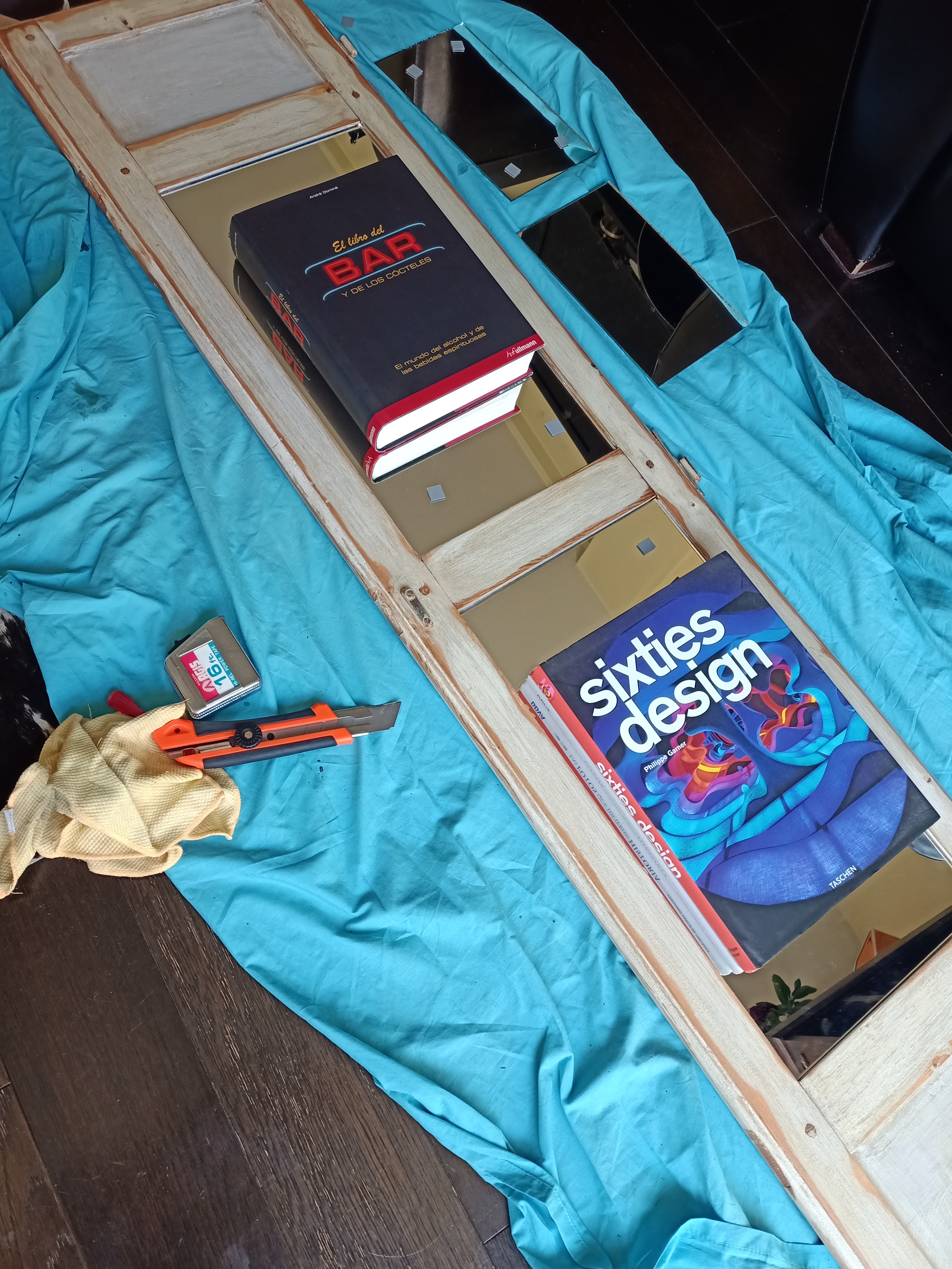 5 Dejar secar 24 horas y luego medir los 4 «cuadros interiores» de la contraventa para poder pedir los 4 espejos (para cada contraventana) a medida al Cristalero del barrio