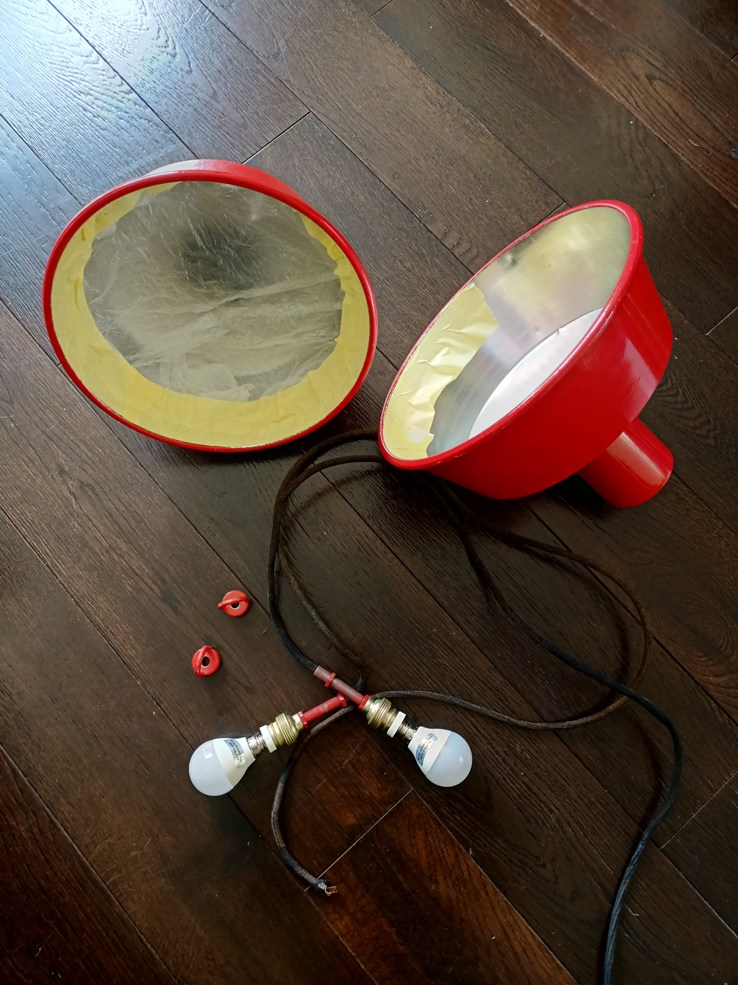 … voila 2 focos industriales funcionales que están ahora luciendo en casa de Sergio en Villahormes (Gijón)