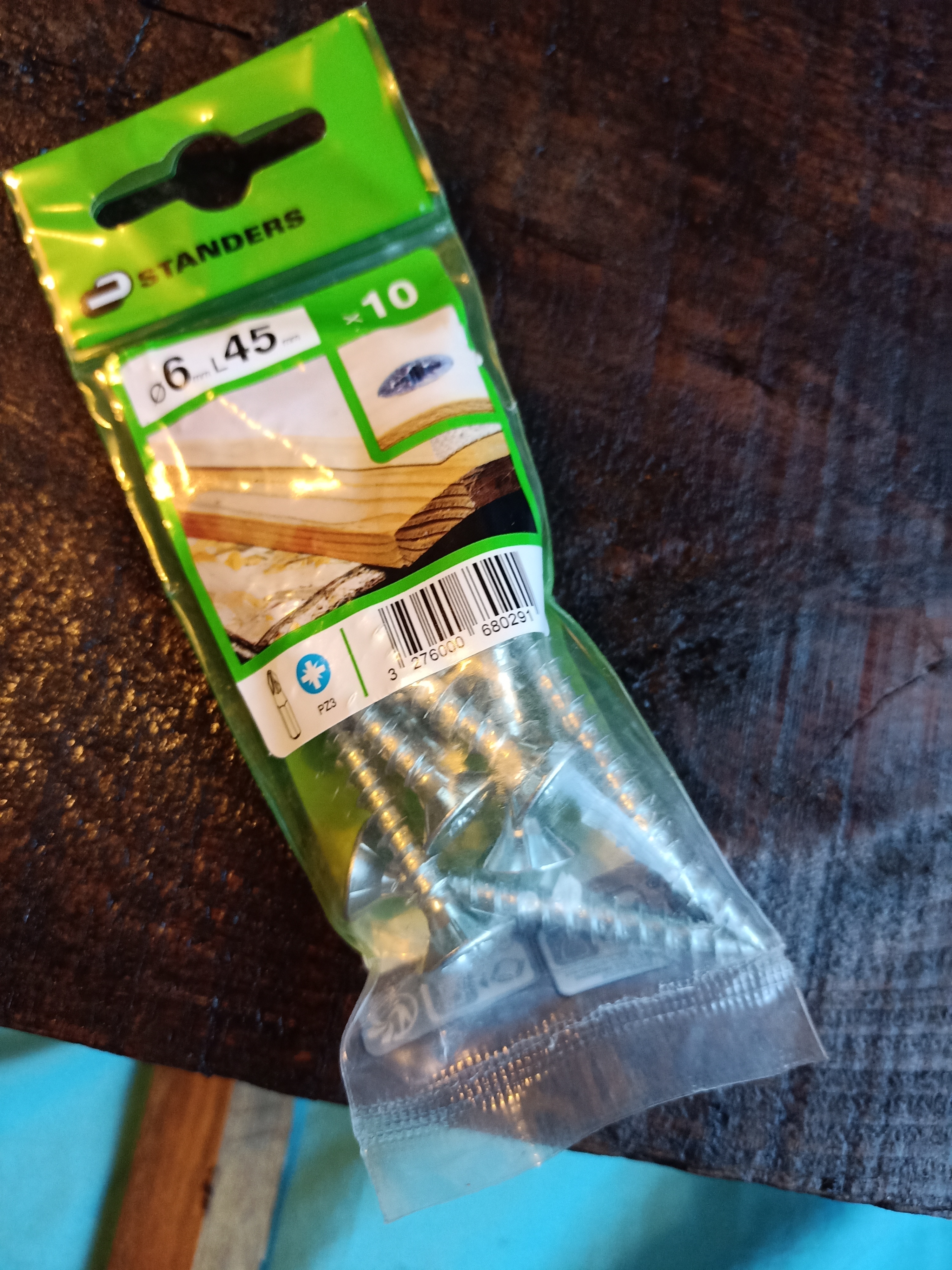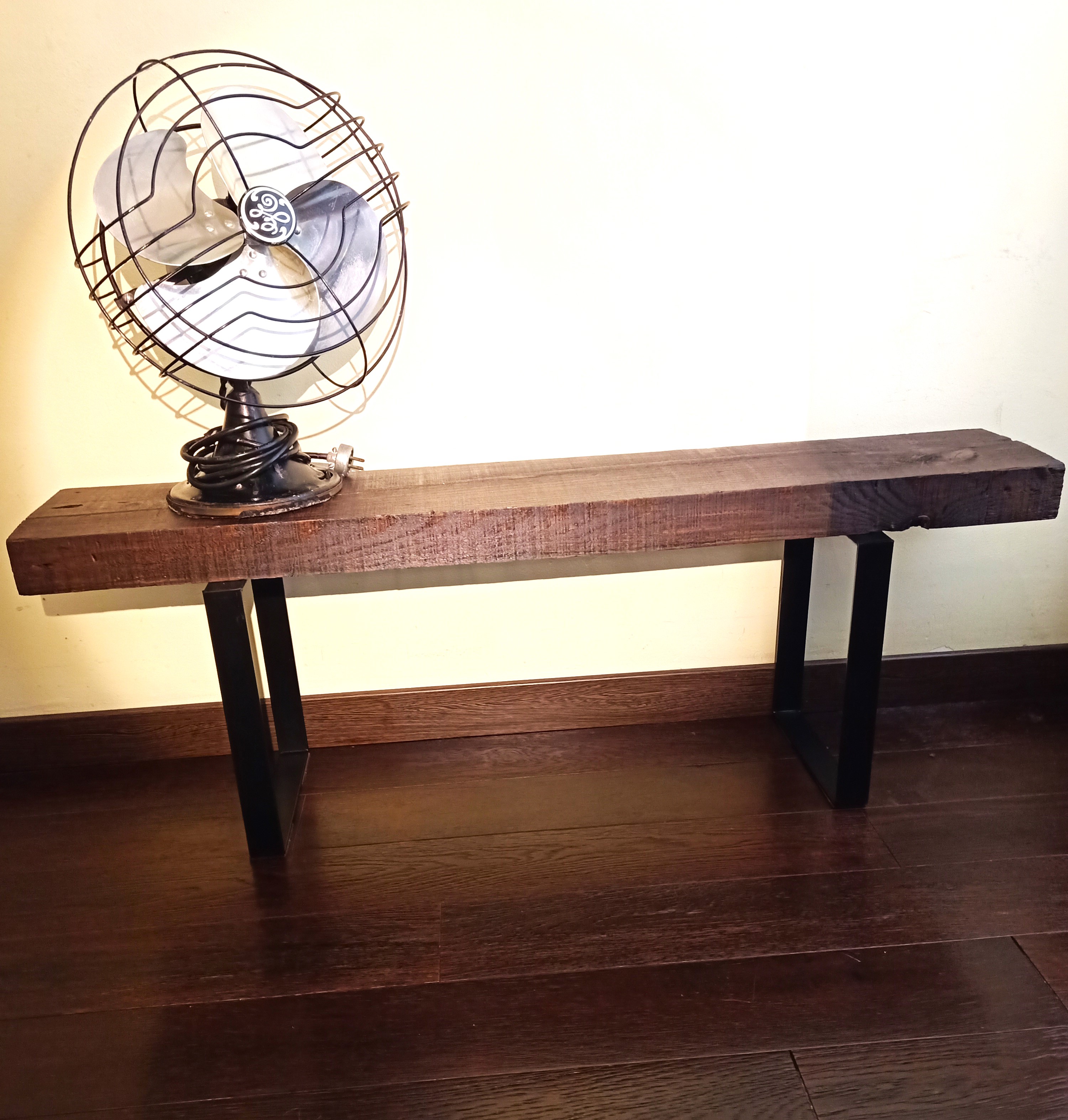 3 Compramos un par de patas de hierro fundido (que puedan aguantar hasta 150Kg) negro (medidas: 25x4x35cm de alto) y unos tornillos («especial madera» de 6mm de diámetro y 45mm de larg0)
