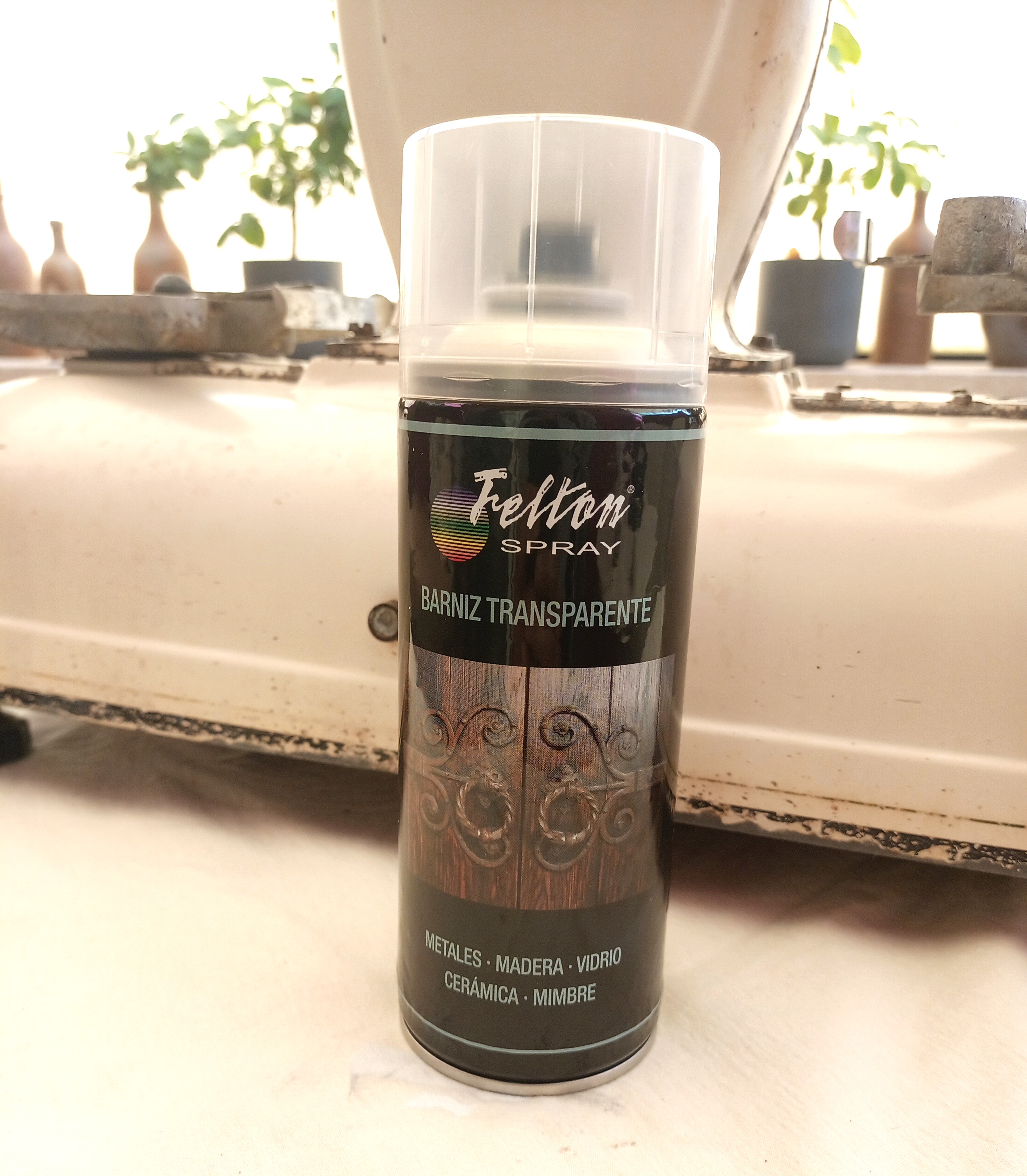 6 tapar los cristales y gracias a un spray de Barniz devolverle su aspecto satinada al esmalte que se quedó mate después de la limpieza y dejar secar 3 horas